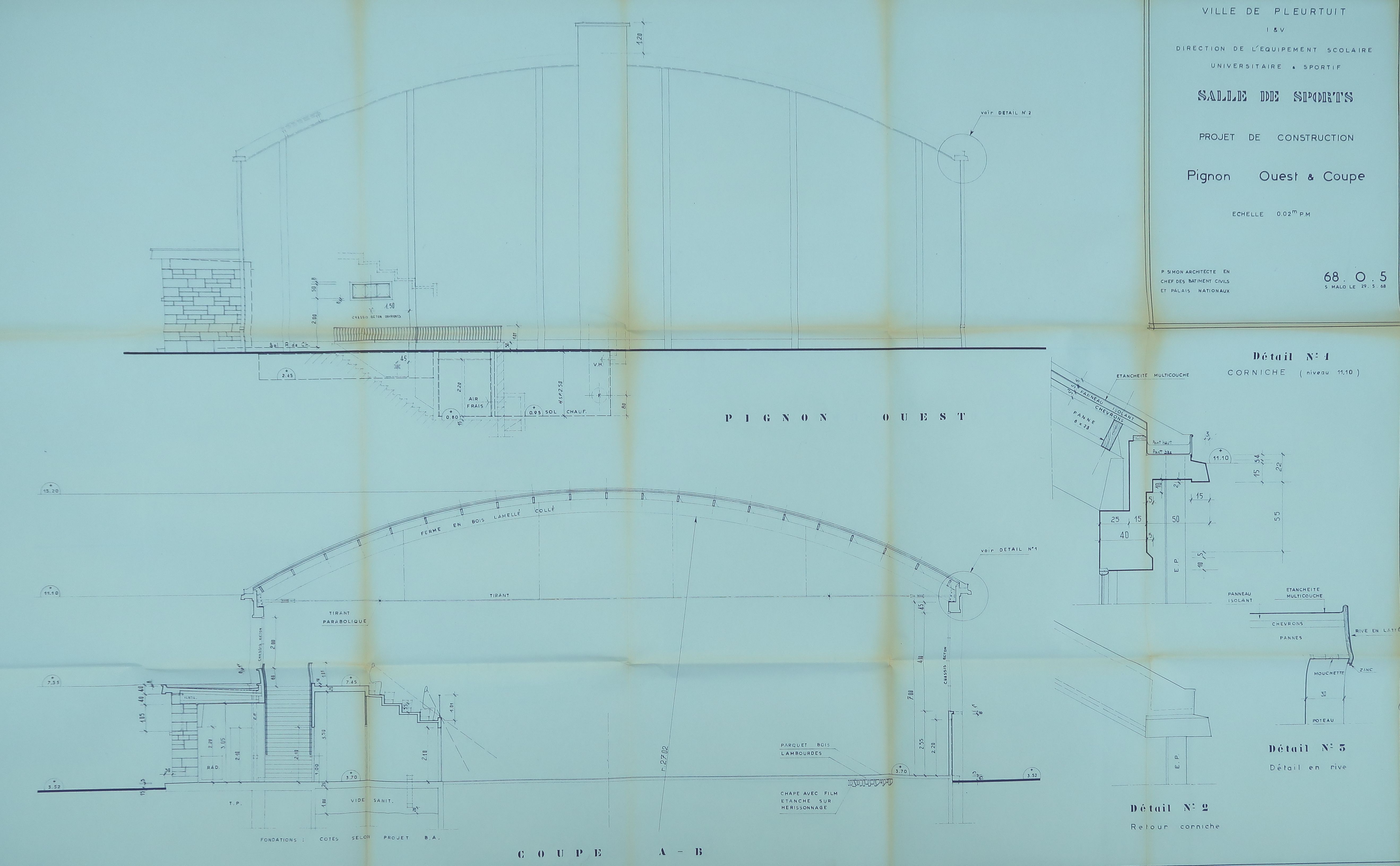 AD Ille-et-Vilaine : 1240 W 127. Pignon ouest et coupe. P. Simon, 1968.