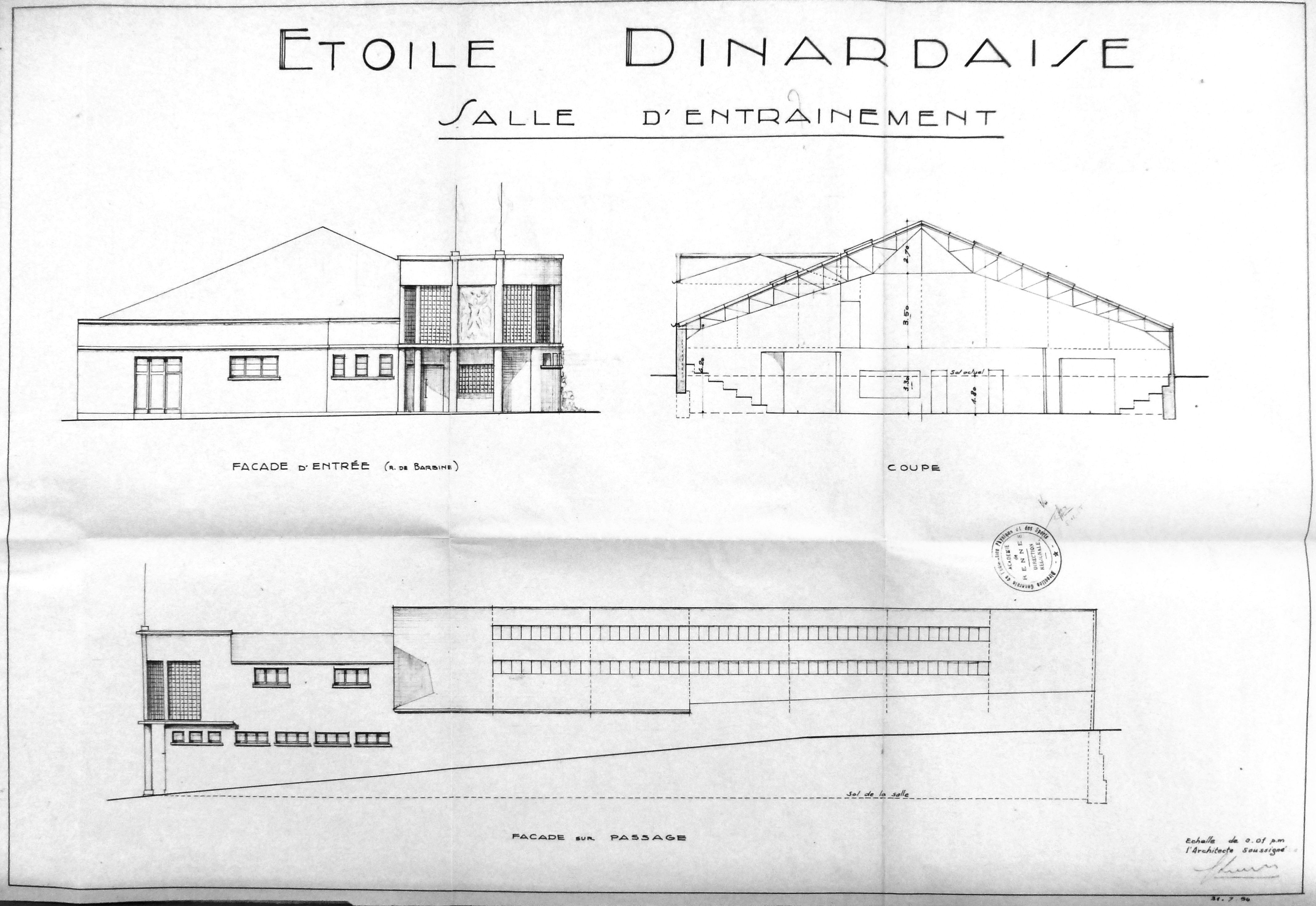 AD Ille-et-Vilaine : 152 W 585. Élévations et coupe. G. Legrand, 1954.