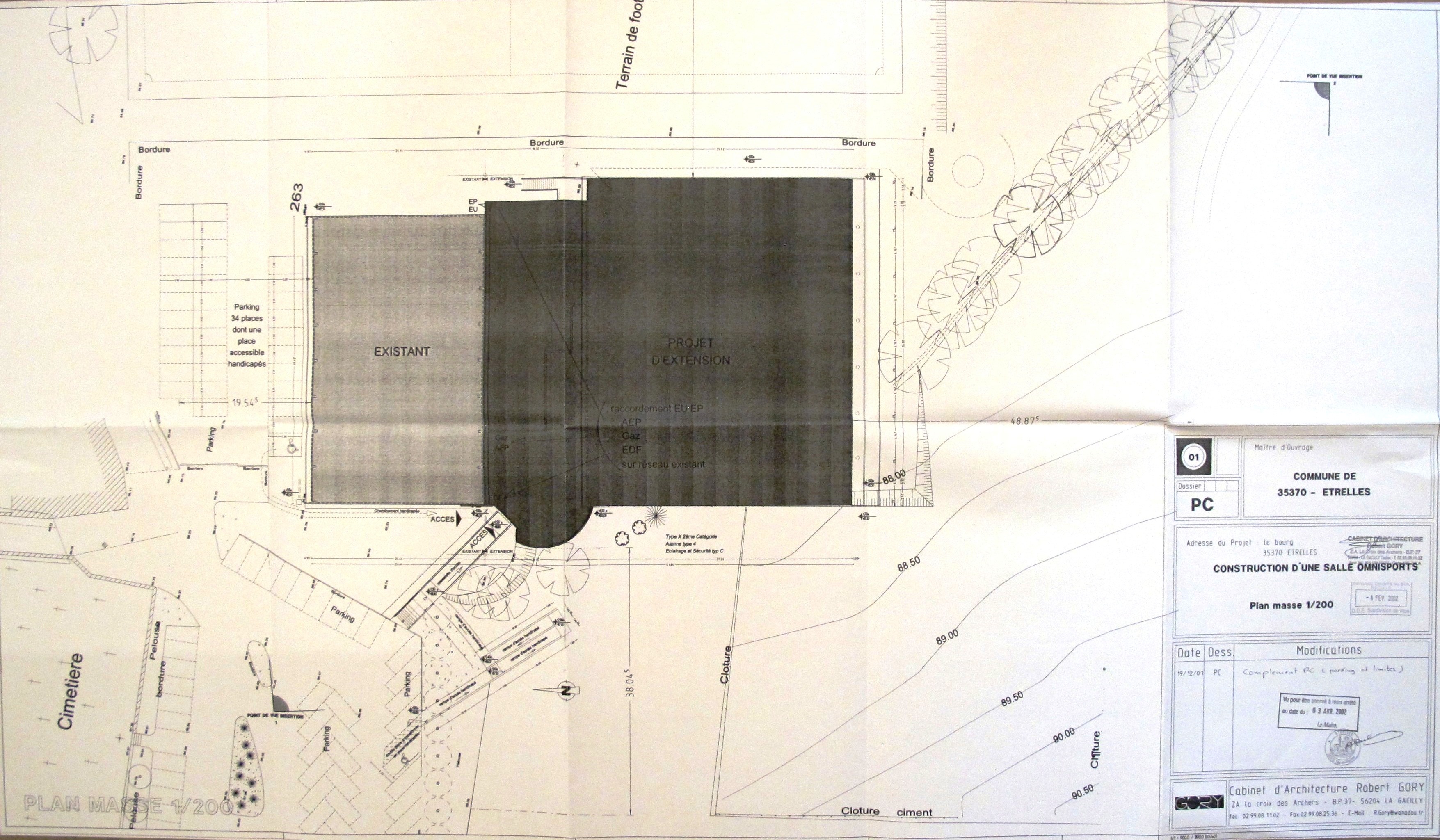 AC Etrelles : PC n° 3510901V1033. Plan masse. R. Gory, 2001.