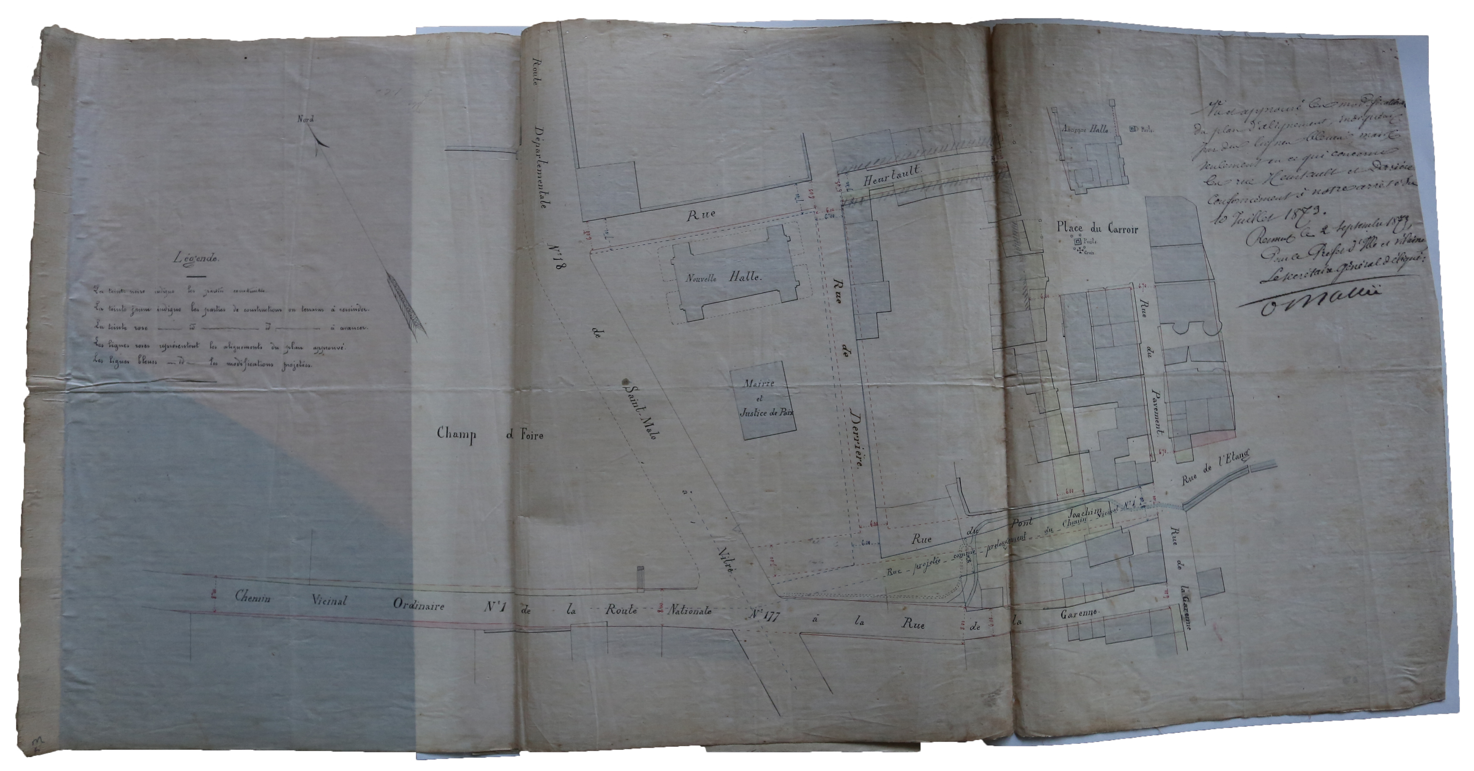 Plan d'alignement de la ville de Archives Saint-Aubin-du-Cormier, 1879, C10 7, Archives communales de Saint-Aubin-du-Cormier.