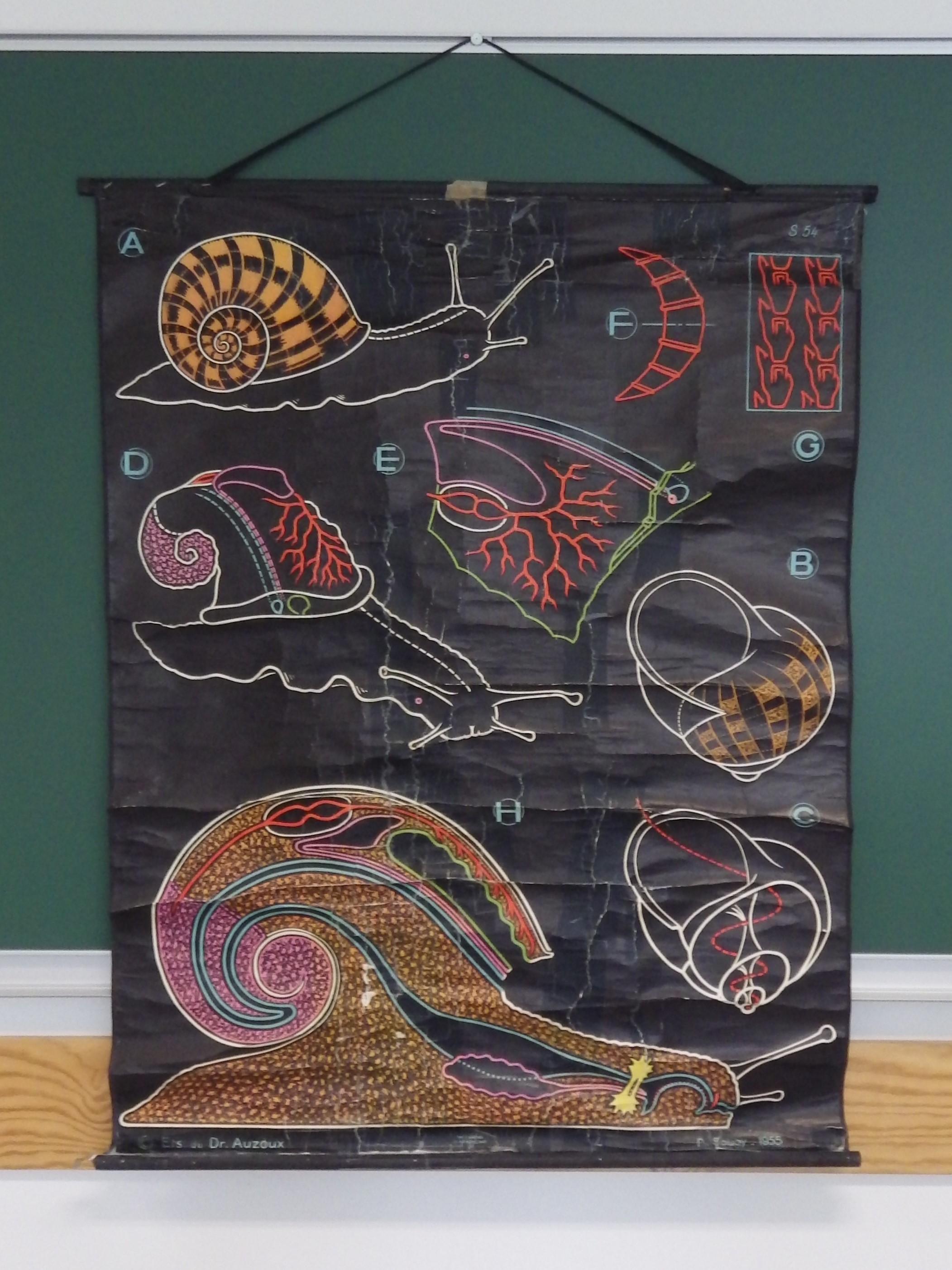 L'escargot - Collection de planches pédagogiques (Schémas didactiques dessinés par P. Sougy, Ed. les Etablissements du Dr Auzoux, 1955)Immatriculation