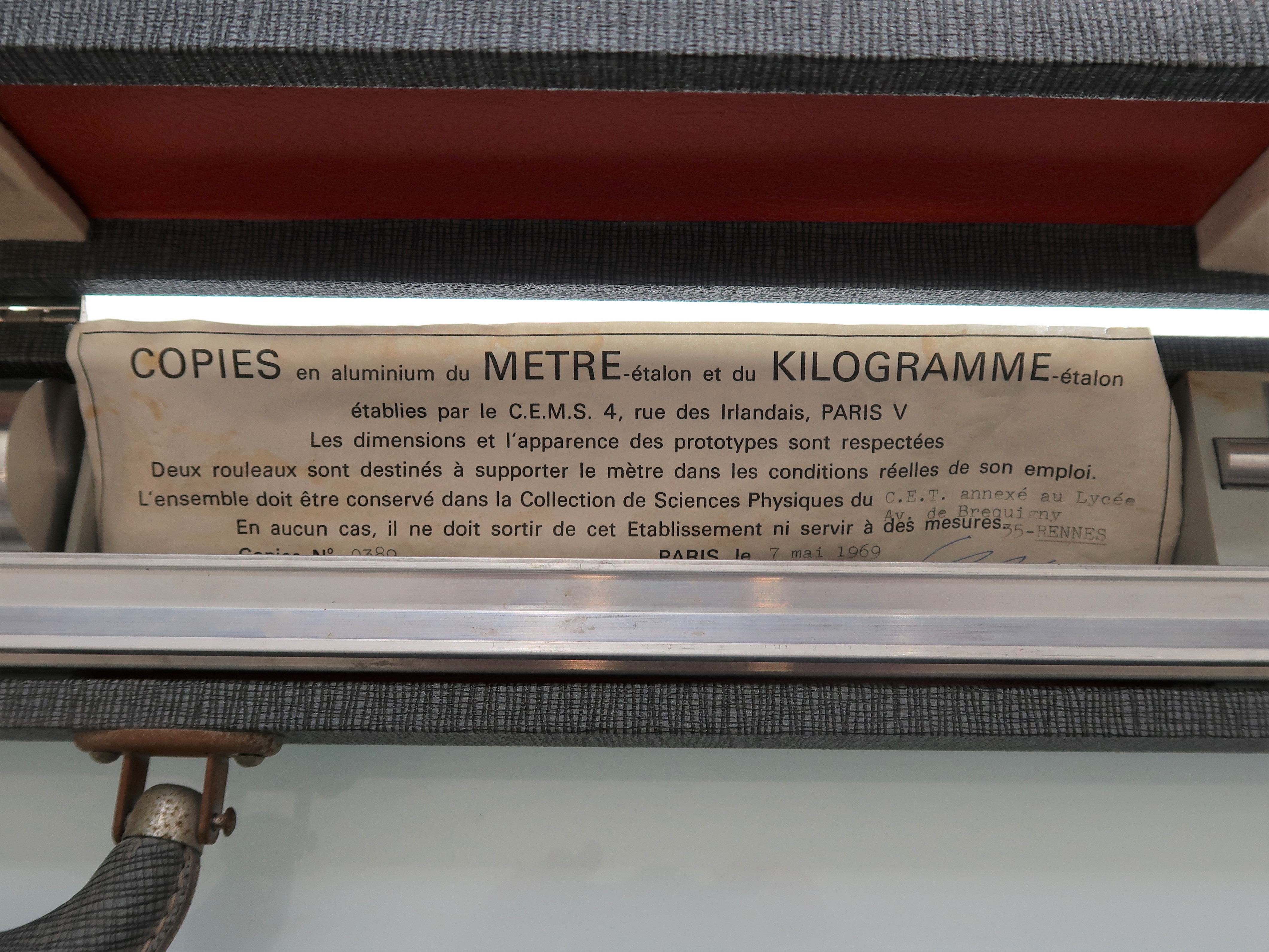 Note accompagnant le modèle de mètre-étalon à traits - Pesanteur-Mécanique-Mesure (C.E.M.S., 1969)Immatriculation