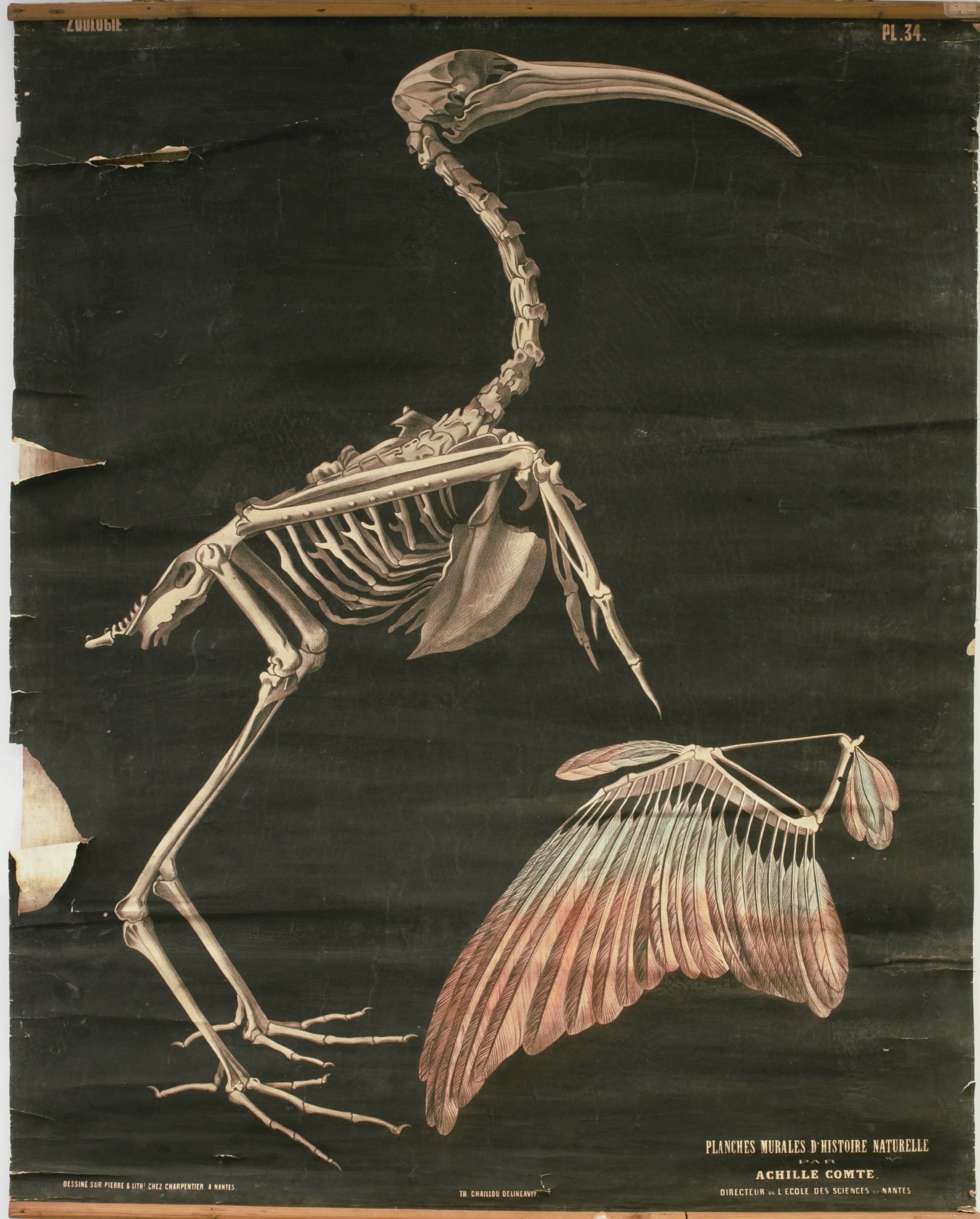 Squlette de l'ibis et aile de moineau étalée - Collection de planches pédagogiques (Achille Comte, 1862-1864)Immatriculation