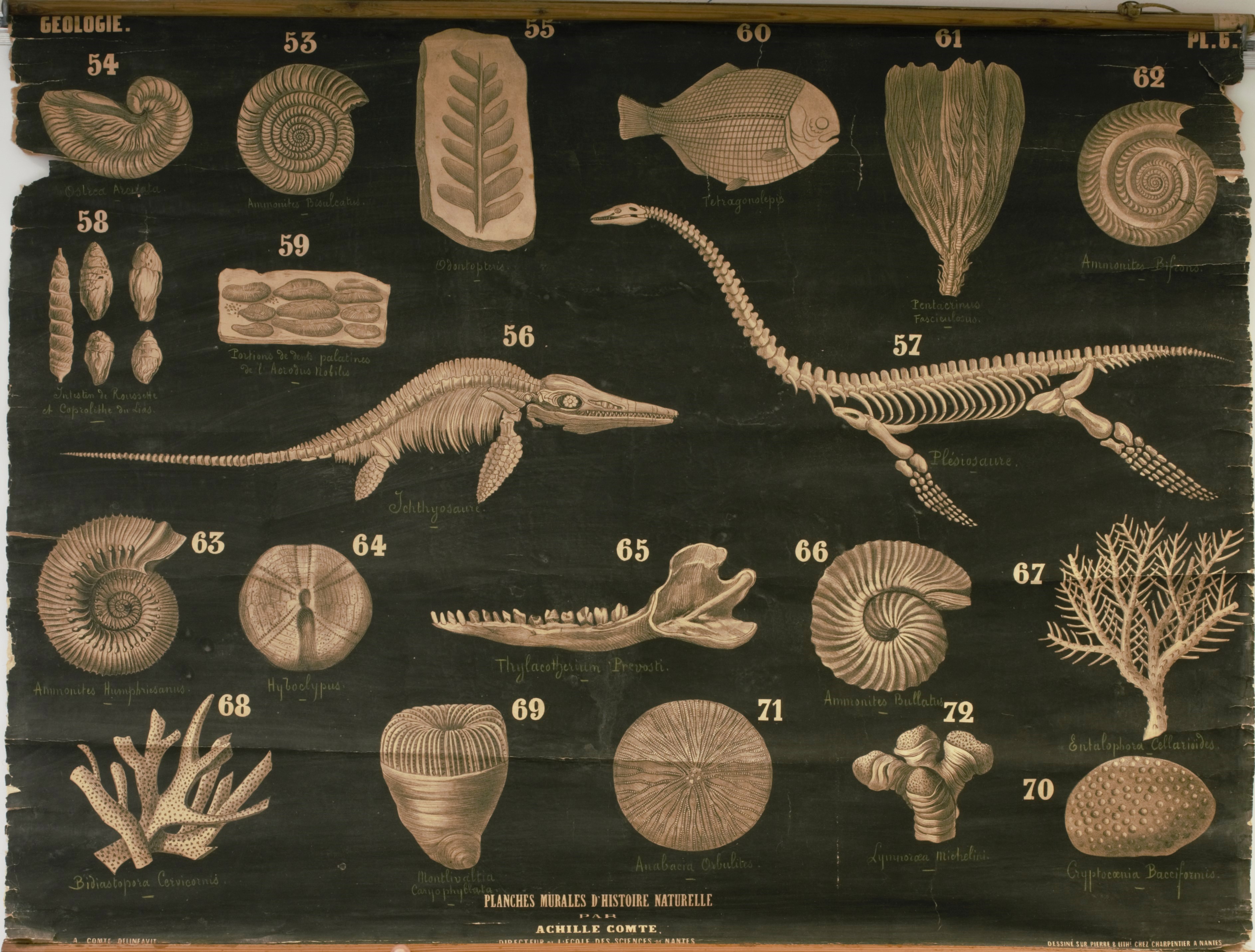 Fossiles du terrain jurassique - Collection de planches pédagogiques (Achille Comte, 1862-1864)Immatriculation