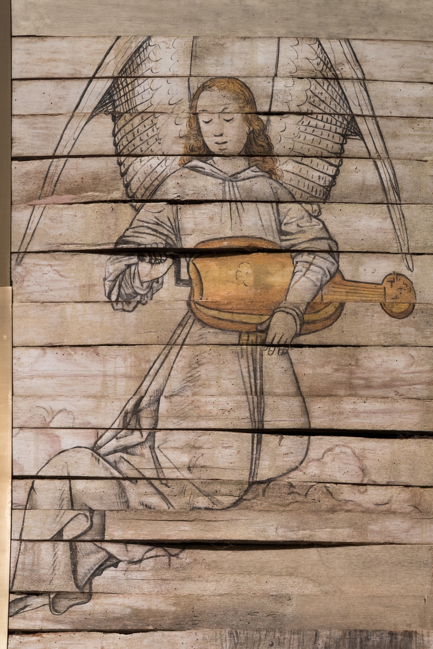 Lambris du XVème siècle. Ange avec une vielle à roue. Mur nord, registre médianImmatriculation