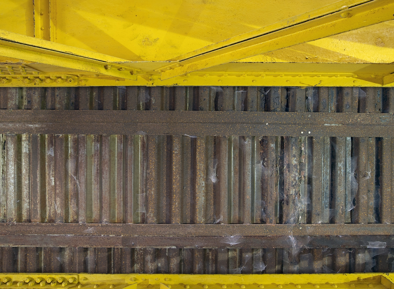 Vue du plafond de l'alvéole sud. Il est constitué de tôles nervurées en acierImmatriculation