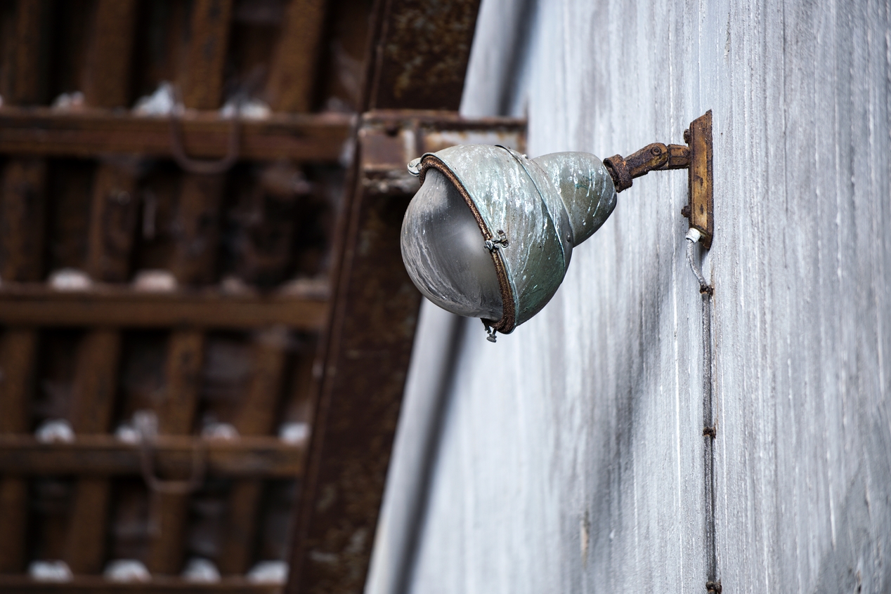 Vue de l'une des lampes murales des alvéoles (elle est dotée de son globe)Immatriculation