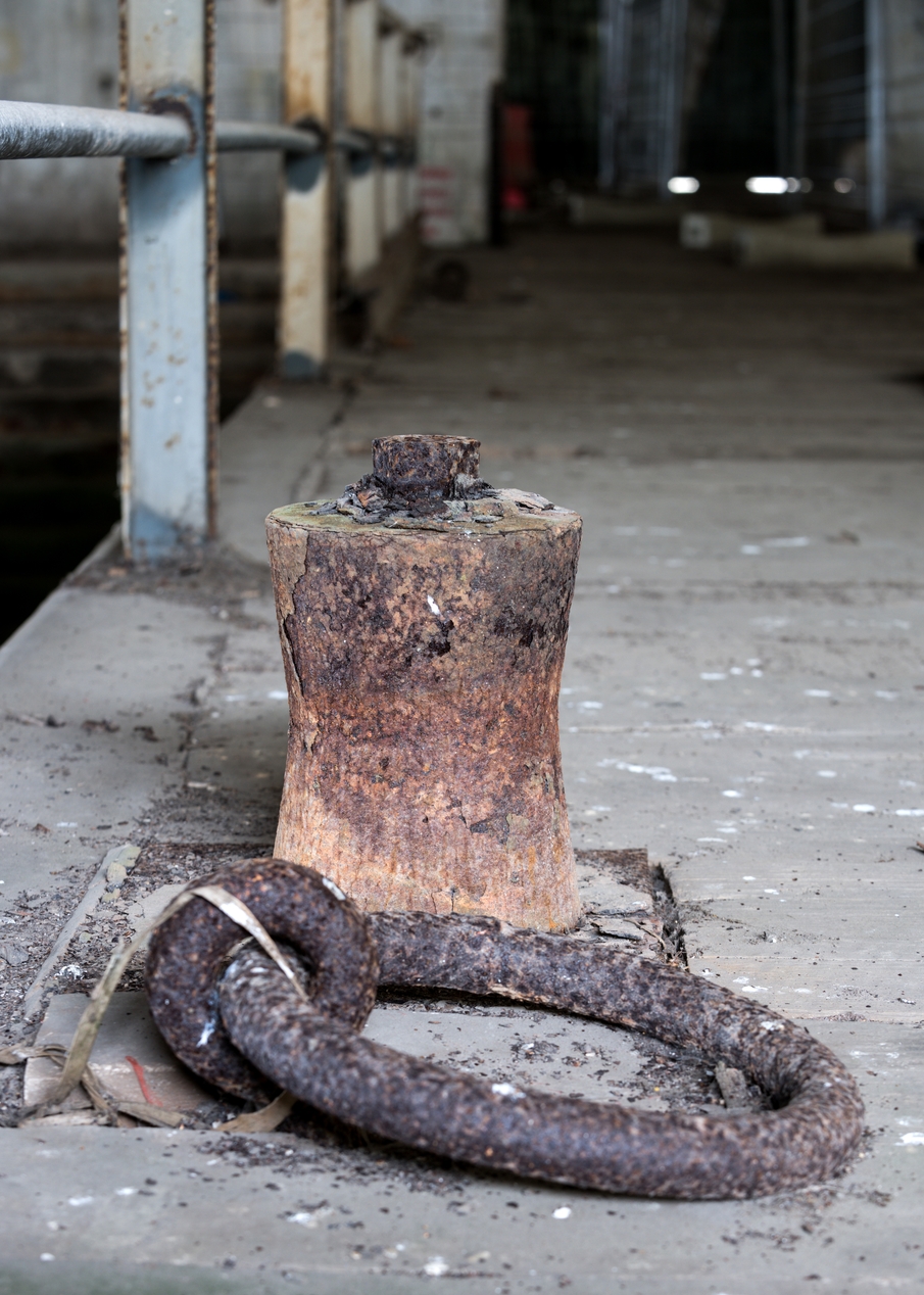 Vue de l'organeau et de la bitte d'amarrage situés au fond du bassin sudImmatriculation
