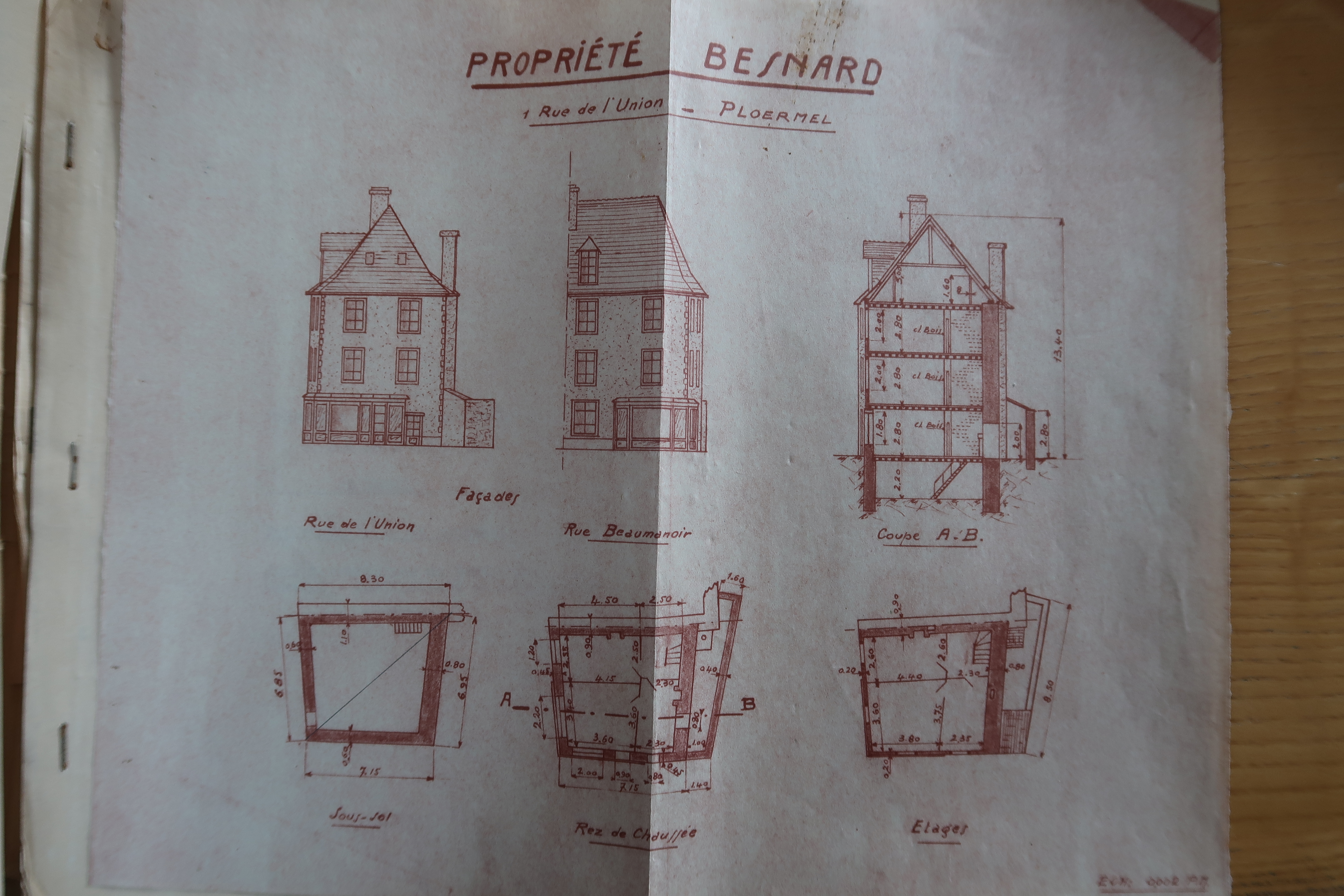 Plans de la propriété Besnard, 1 rue de l'Union - Ploërmel, 7W2968, Archives départementales du Morbihan.
