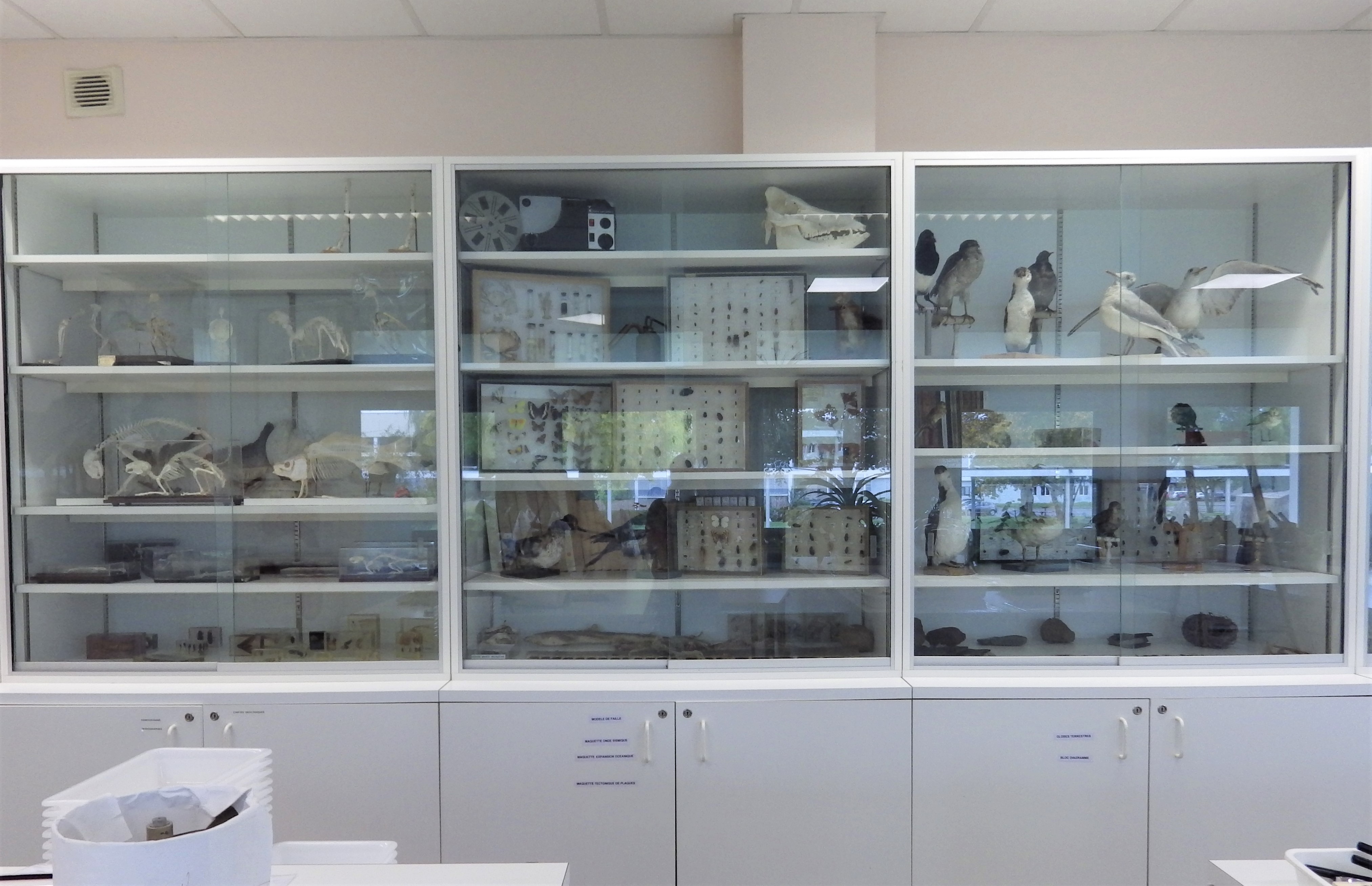 Vue des armoires du laboratoire de SVT où sont conservées une partie des collectionsImmatriculation