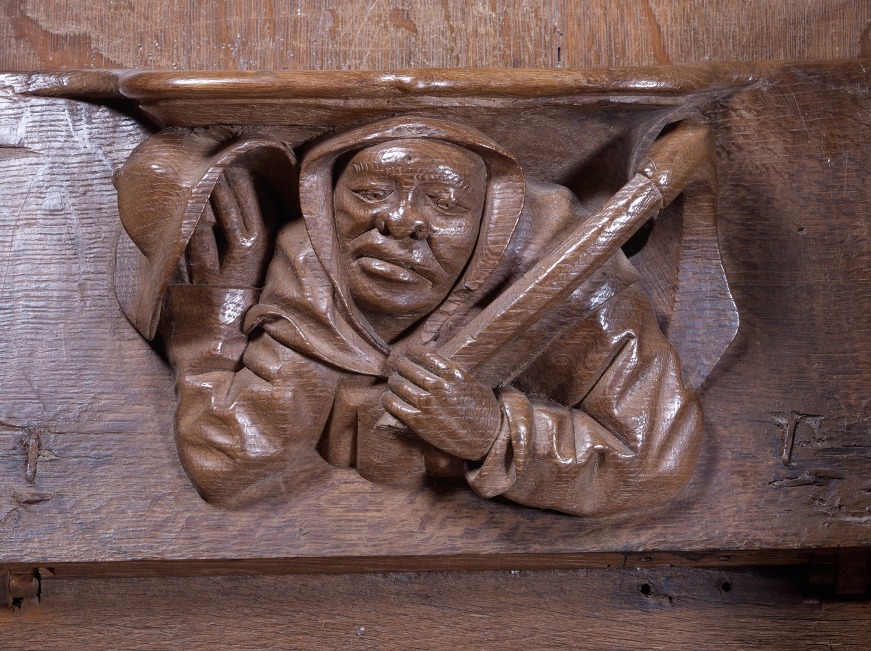 Détail de l'une des stalles : un mineur avec son herminetteImmatriculation