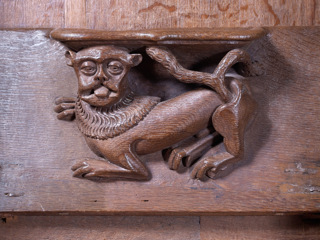 Détail de l'une des stalles : un léopard héraldiqueImmatriculation