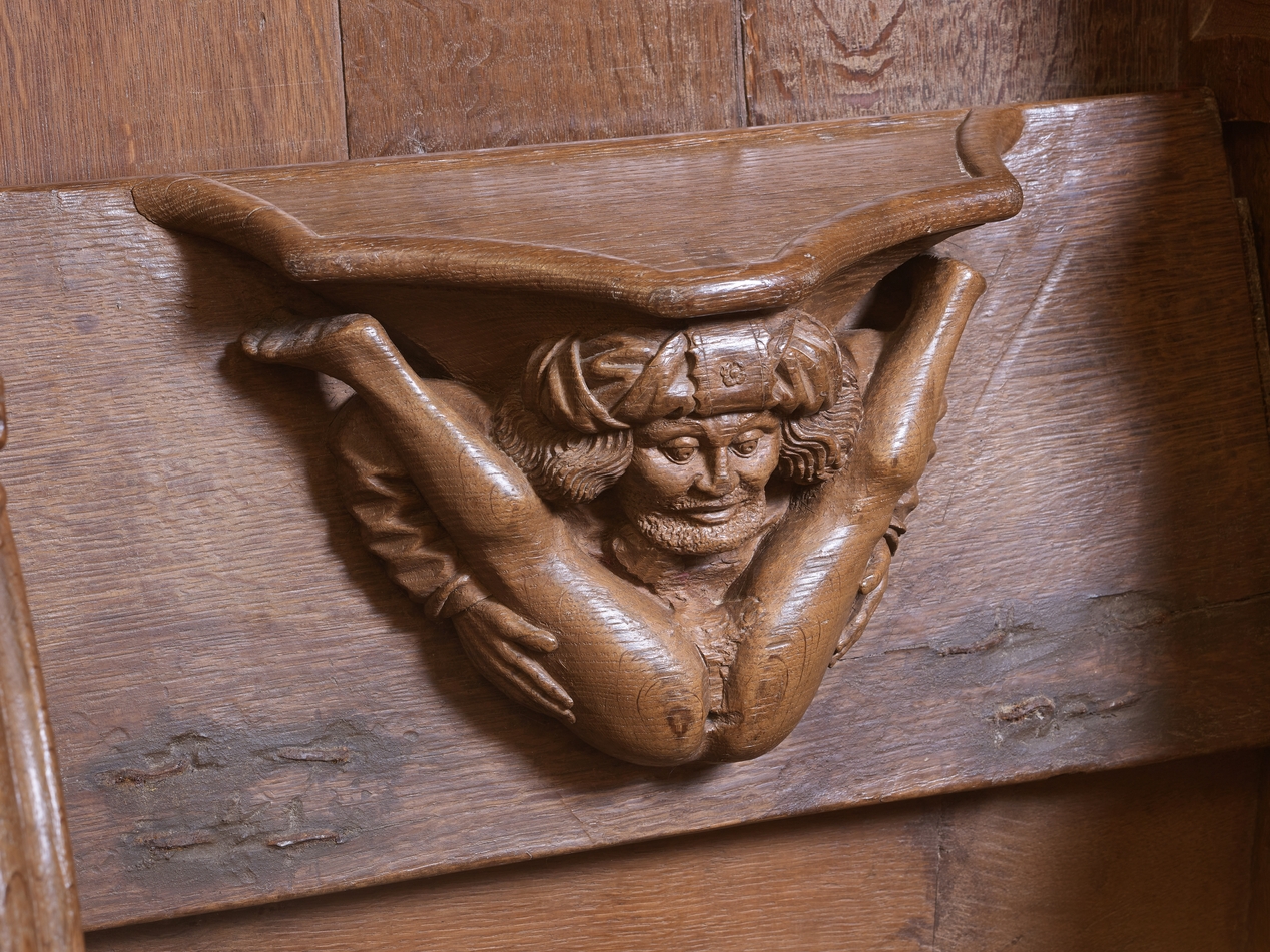 Détail de l'une des stalles : un accrobate exhibitionnisteImmatriculation