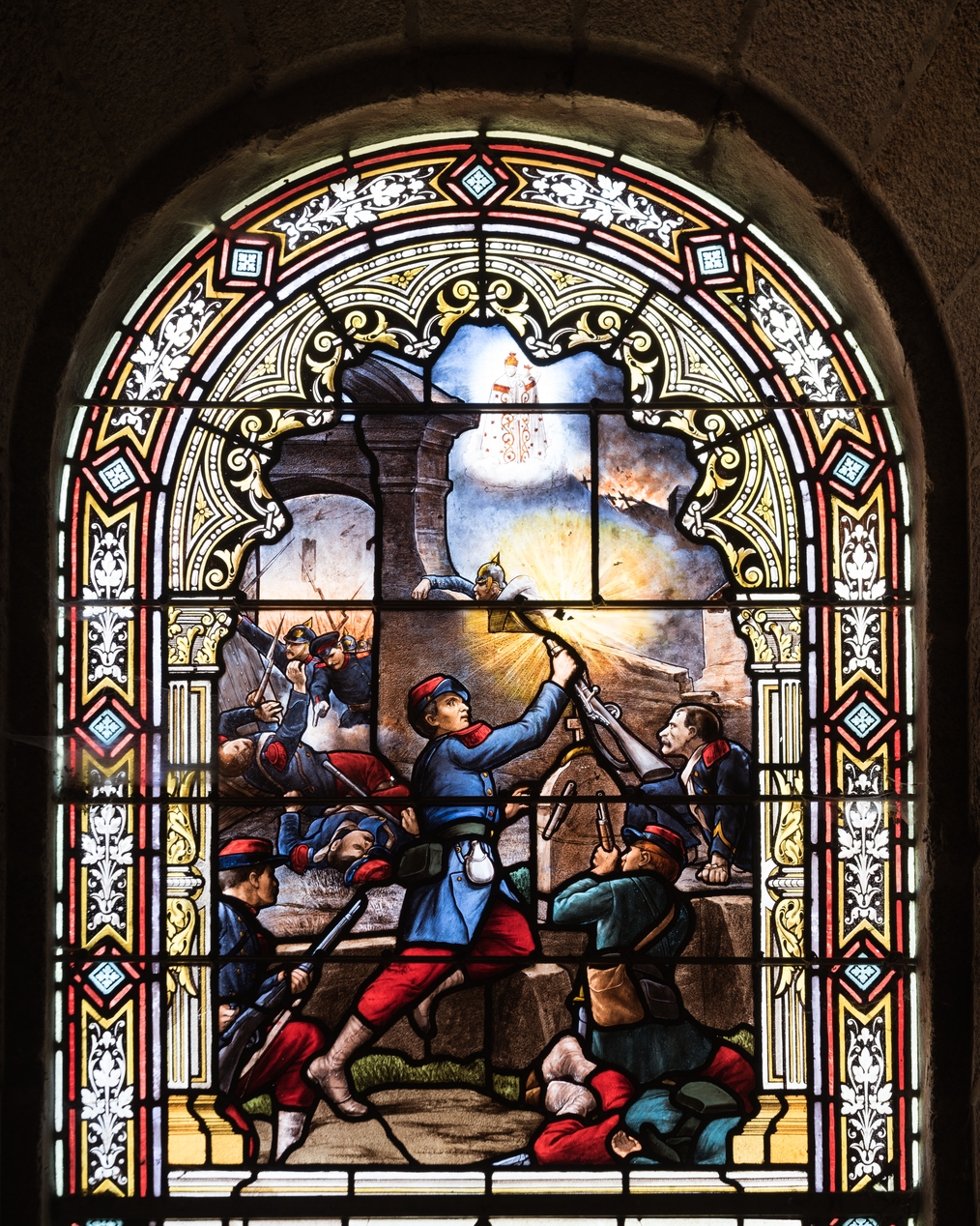 Ensemble de 8 verrières à personnages des baies 1 à 8 : Miracles de Notre-Dame du Guiaudet,