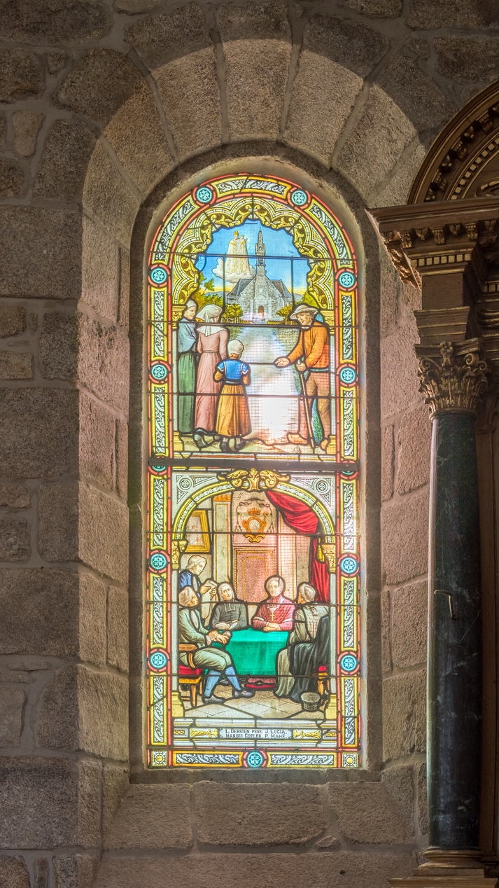 Ensemble de 8 verrières à personnages des baies 1 à 8 : Miracles de Notre-Dame du Guiaudet,