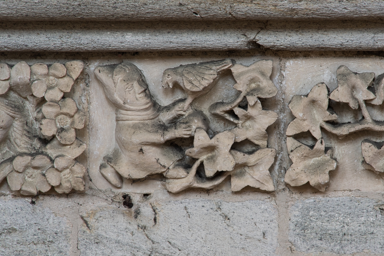 Détail de la frise sculptée en calcaire soulignant le triforiumImmatriculation