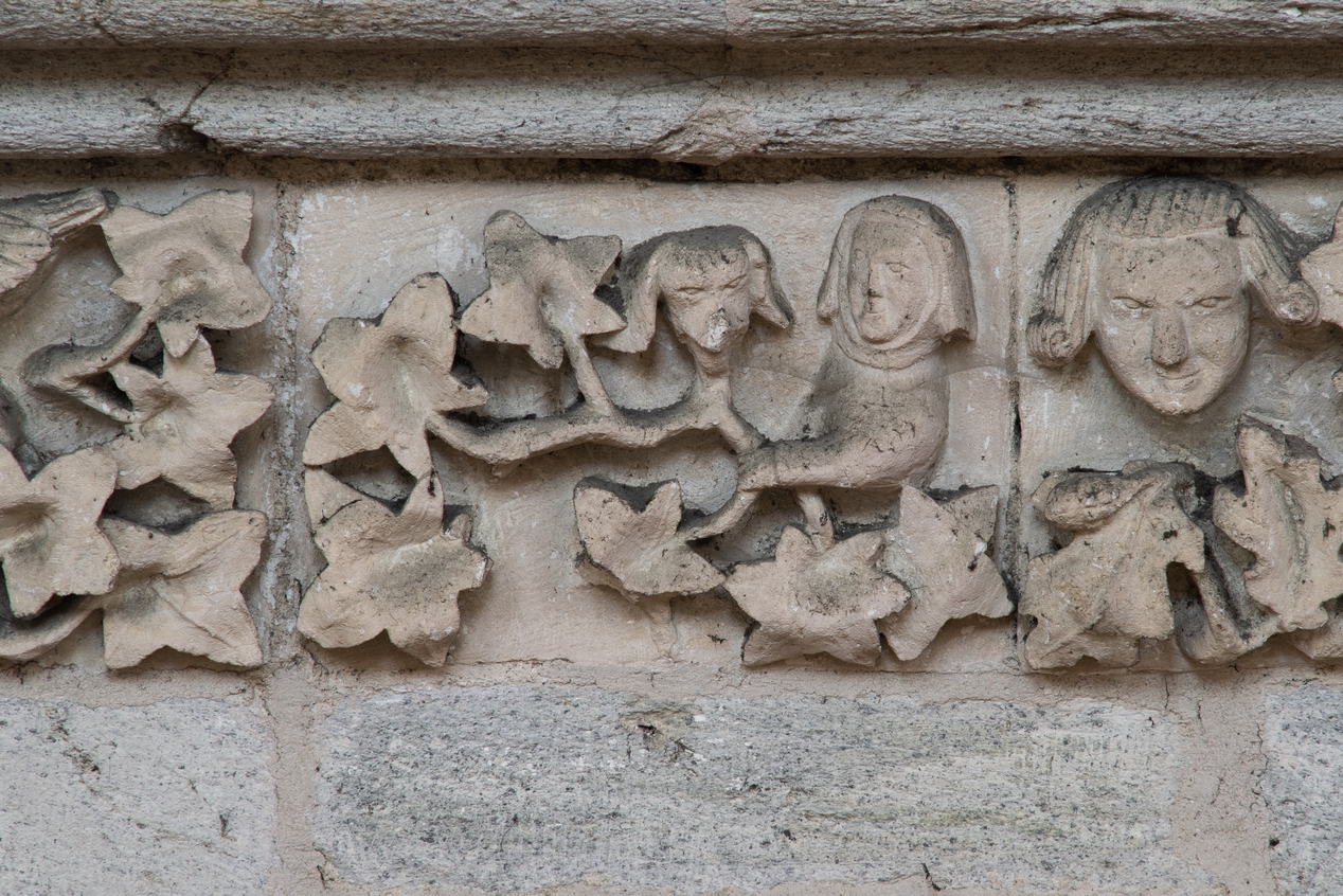 Détail de la frise sculptée en calcaire soulignant le triforiumImmatriculation
