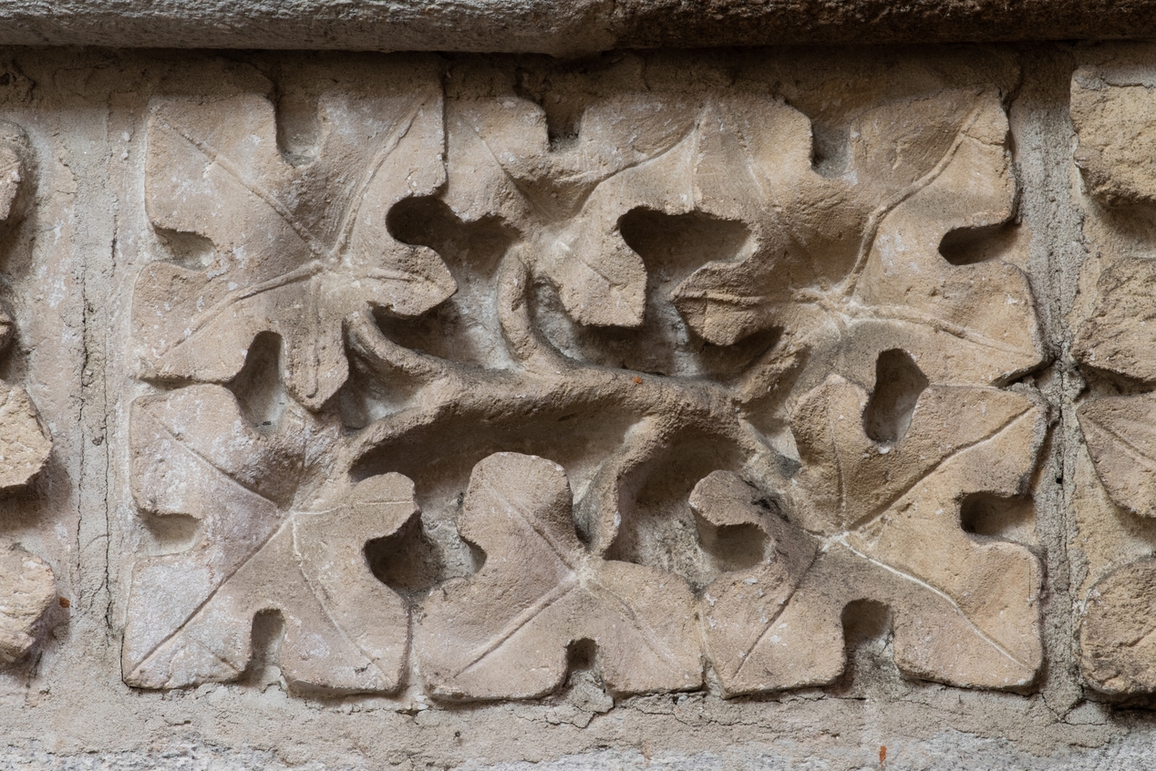 Détail de la frise sculptée en calcaire soulignant le triforiumImmatriculation