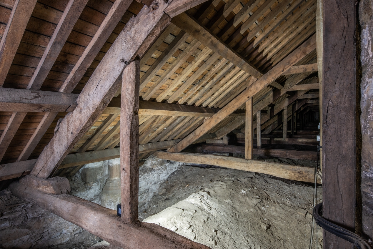 Détail du bas-côté nord : extrados de la voûte et charpenteImmatriculation