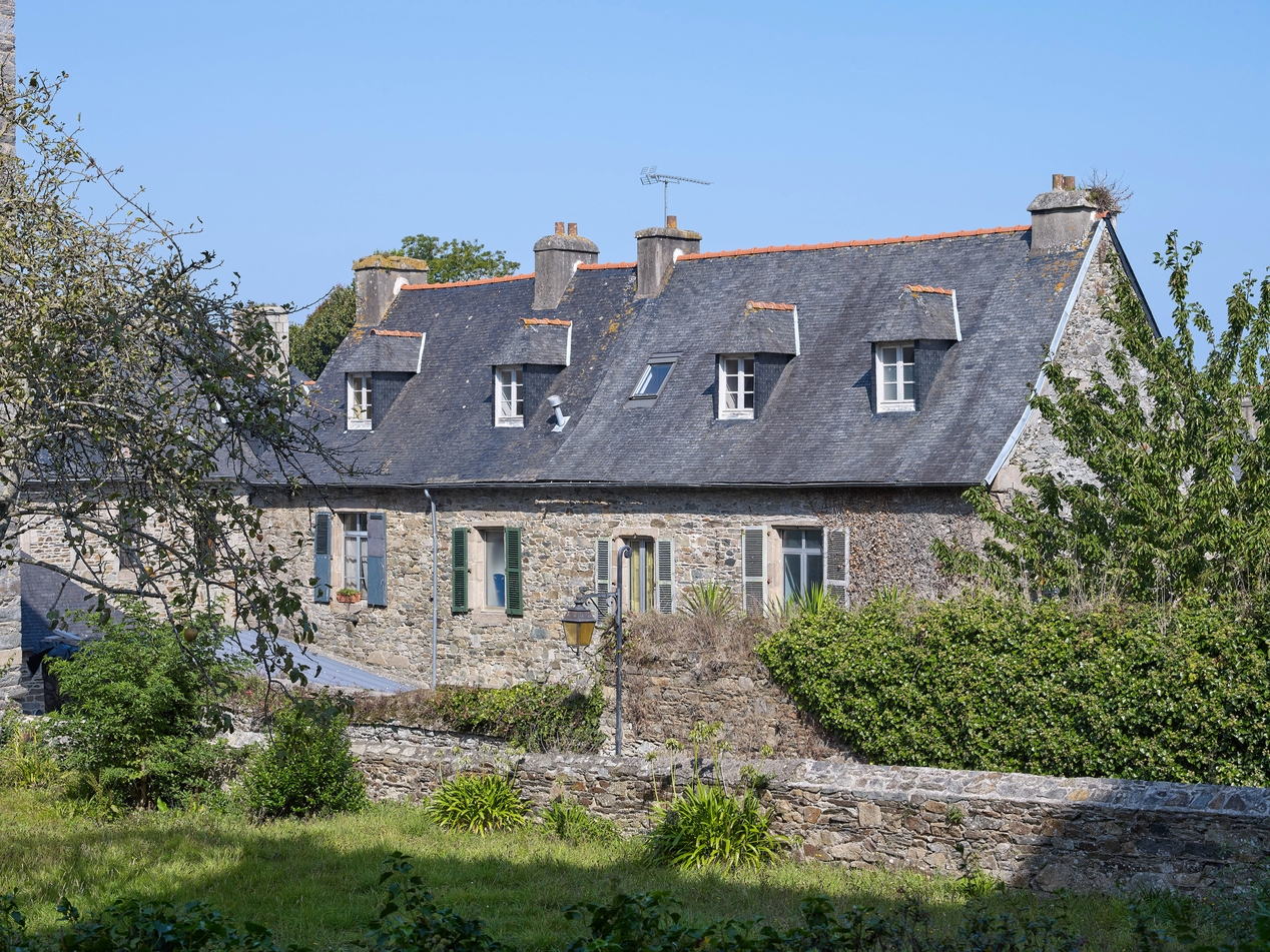Tréguier, 9 rue des Perdreries (Perderies) : maison dite "Scolasticat", logis principal, élévation ouest précédée d'une avant-cour, état en 2020Immatriculation
