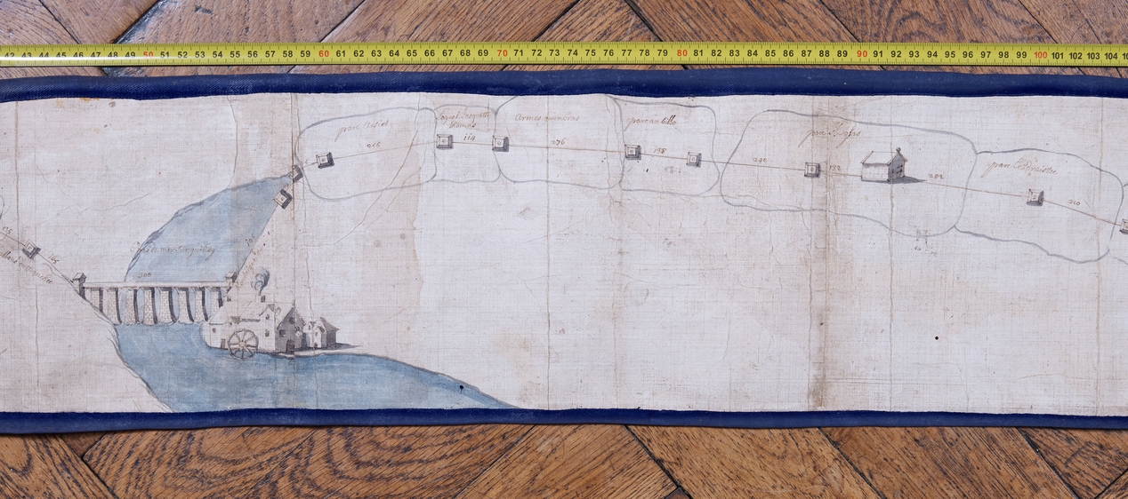 Détail du plan de la conduite d'eau de la ville de Tréguier par Charles Symon, maître peintre, 1610 (Archives communales de Tréguier, 1Fi8)Immatriculation