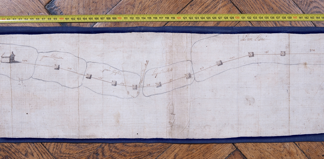 Détail du plan de la conduite d'eau de la ville de Tréguier par Charles Symon, maître peintre, 1610 (Archives communales de Tréguier, 1Fi8)Immatriculation