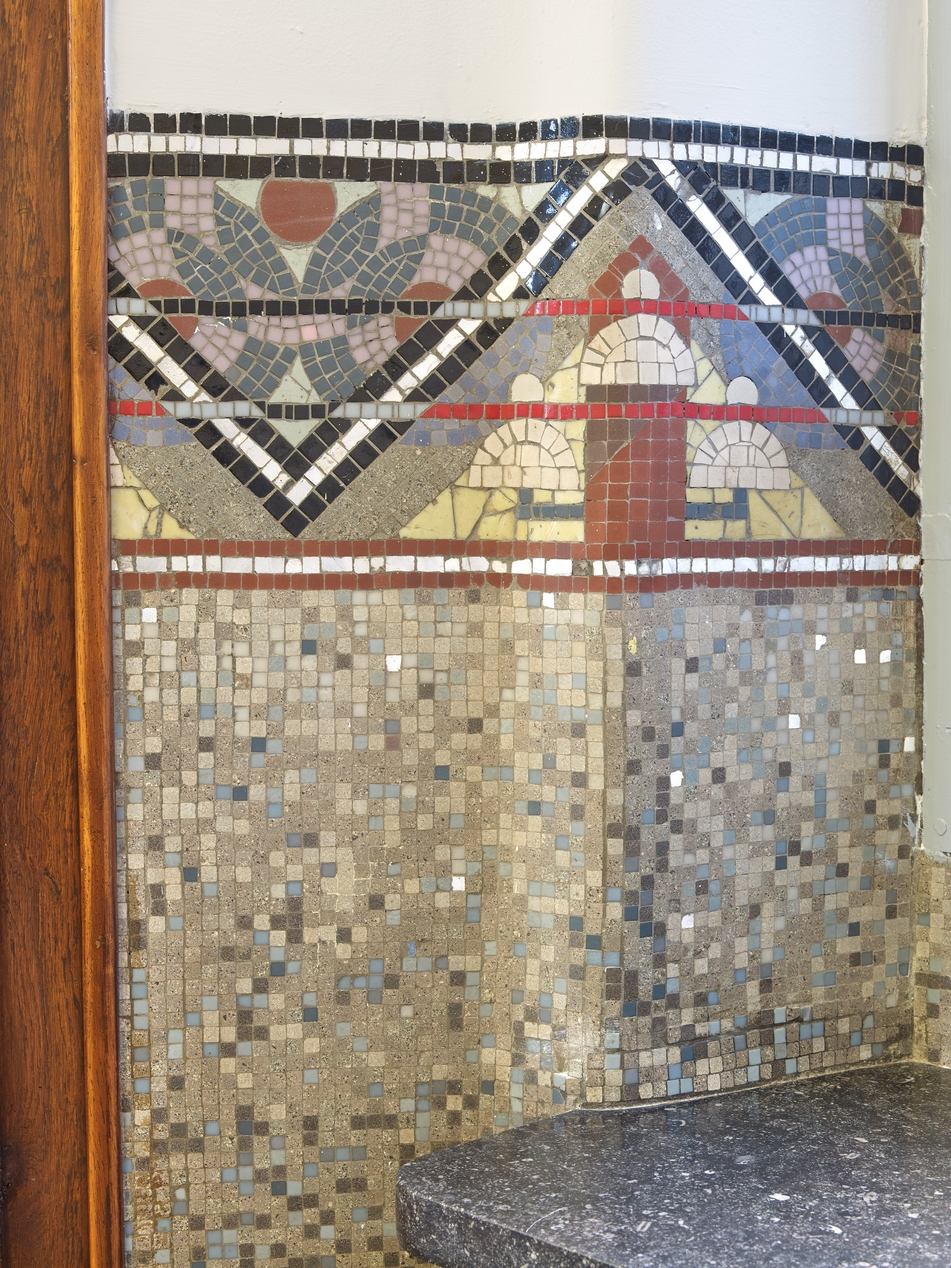 Embrasure d'une fenêtre. Détail du lambris de hauteur en mosaïquesImmatriculation