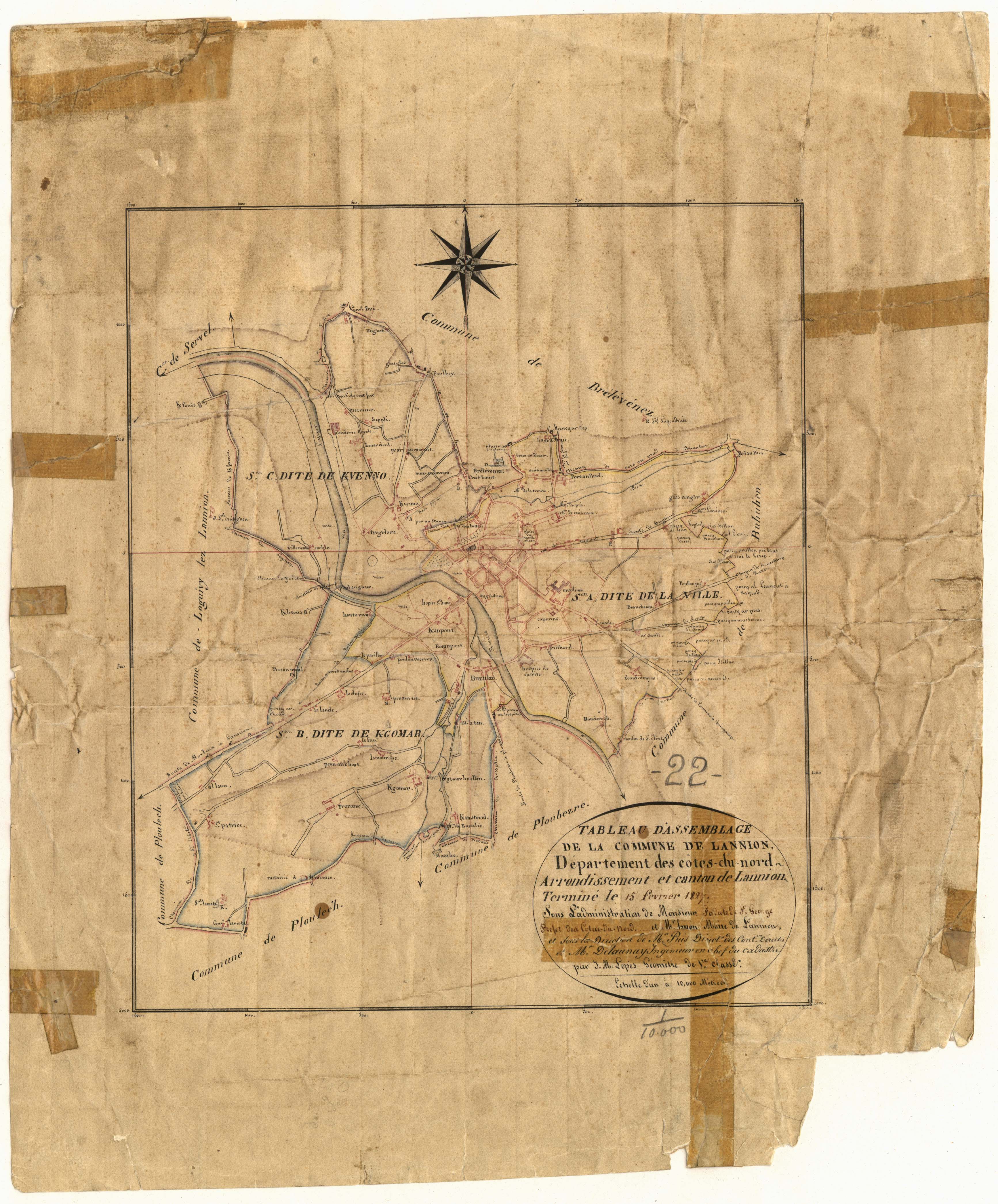 Tableau d'assemblage du cadastre ancien de la ville de Lannion en 1826.Immatriculation