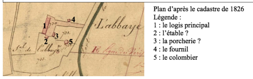 Reconstitution de la métairie de L'Abbaye d'après le cadastre de 1826Immatriculation