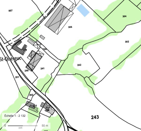 Parcelle de l'ancienne métairie de Saint--Quéreuc, vue de 2019Immatriculation