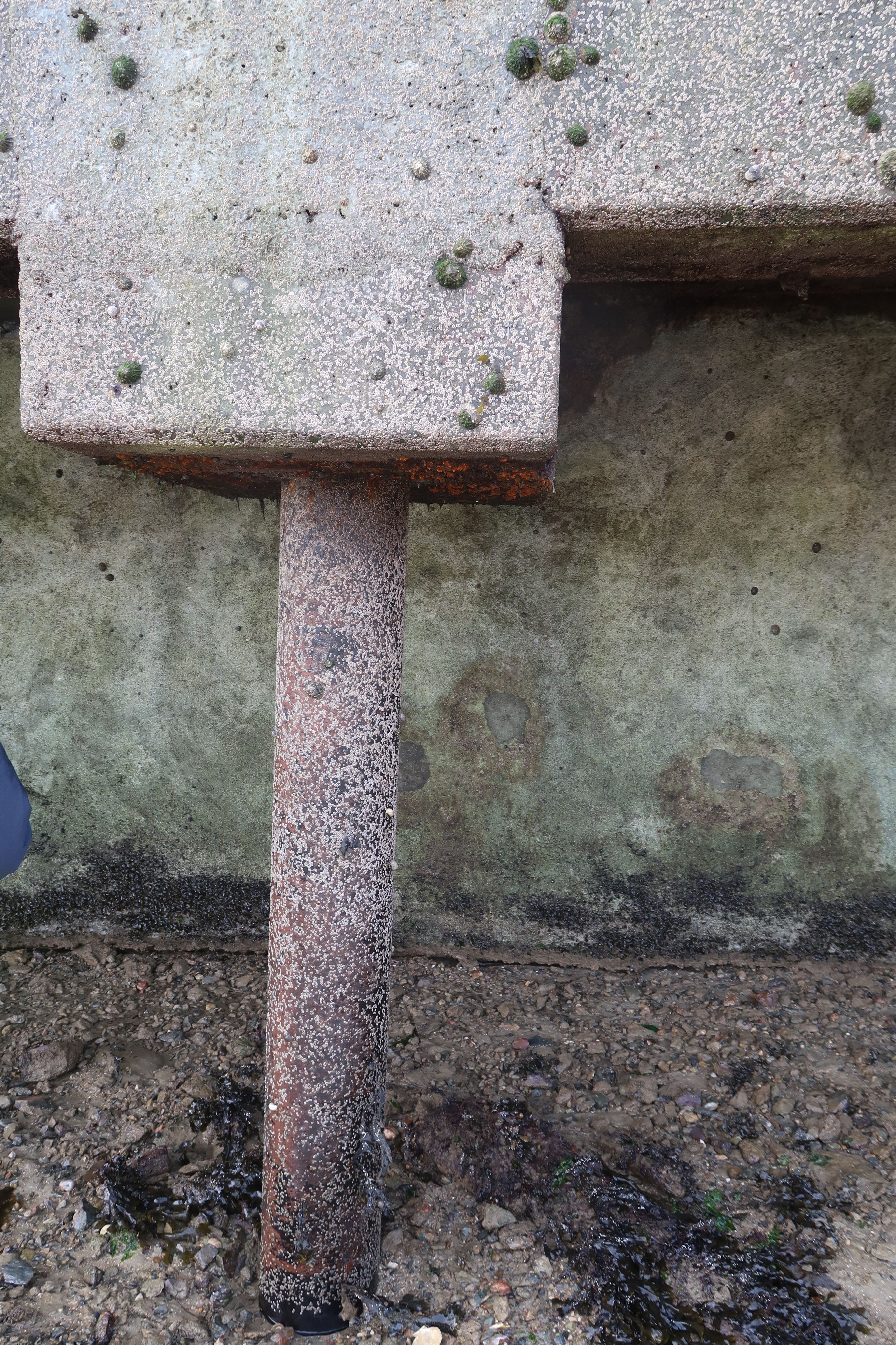 Cale de l'île aux moutons, détail des pieux soutenant l'élargissement de l'infrastructureImmatriculation