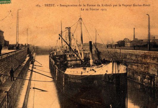 Carte postale : inauguration de la forme de radoub par le vapeur Gorbea-Mendi, le 22 février 1913Immatriculation