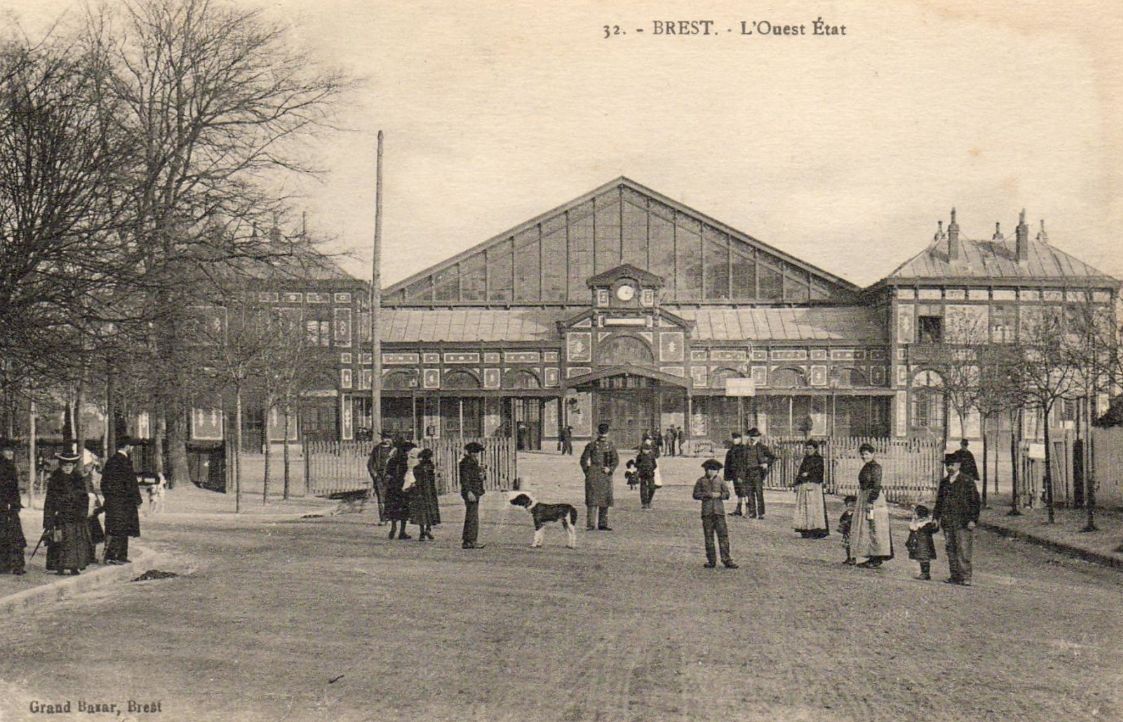 Carte postale, Brest, l'Ouest Etat. Ed. Grand Bazar. Ancienne gare de BrestImmatriculation