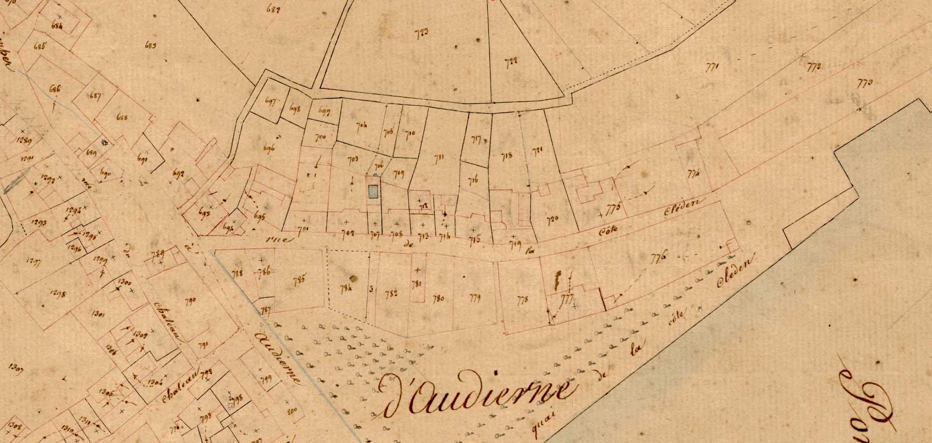 Rue Costé-Cléden, cadastre ancien de la commune d'Audierne, 1837.Immatriculation