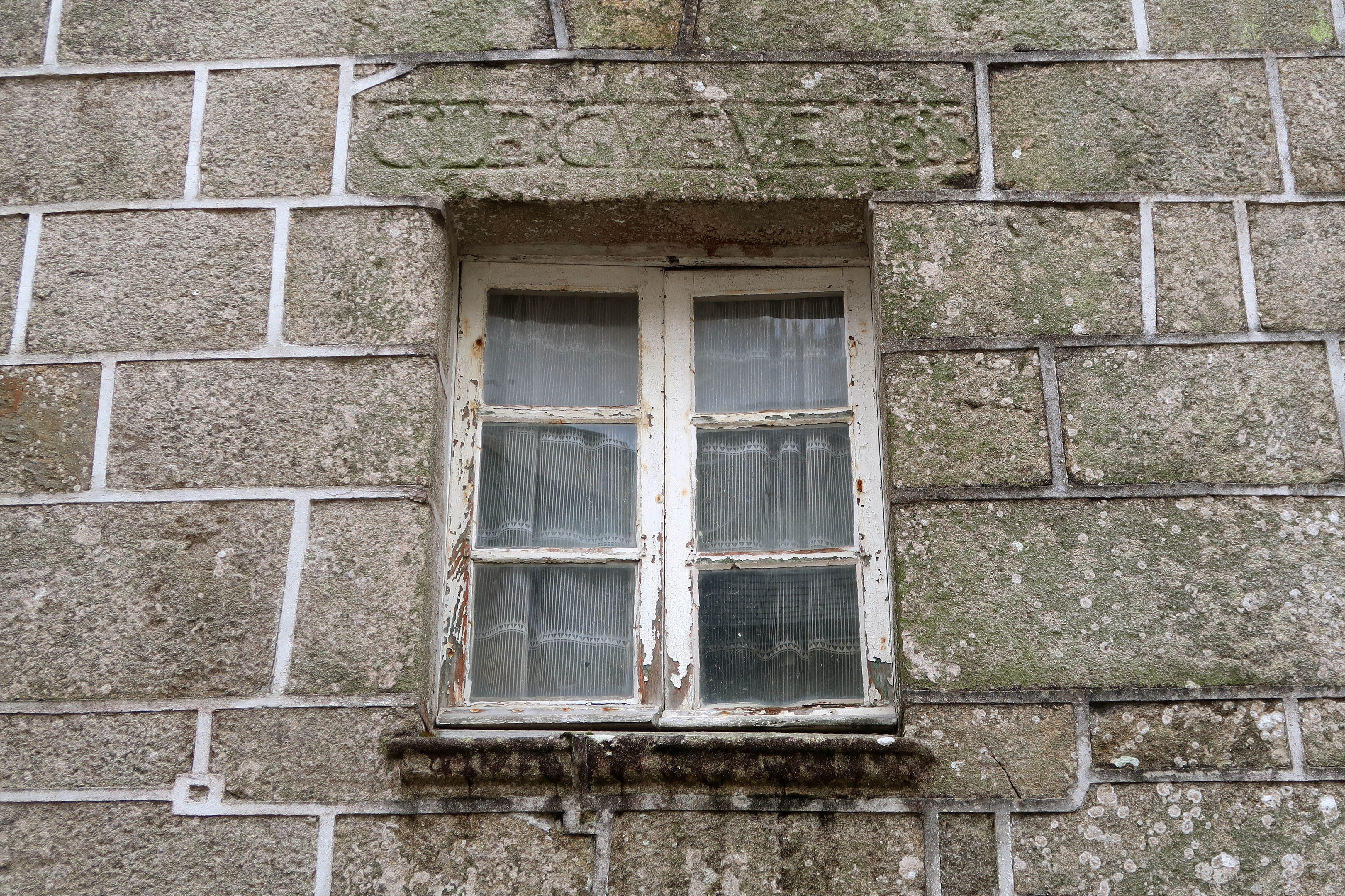 Maison au n°30, élévation antérieure nord, détail d'une fenêtre du deuxième niveau et inscription : "C:LE:GVEVEL 1683". (2020)Immatriculation