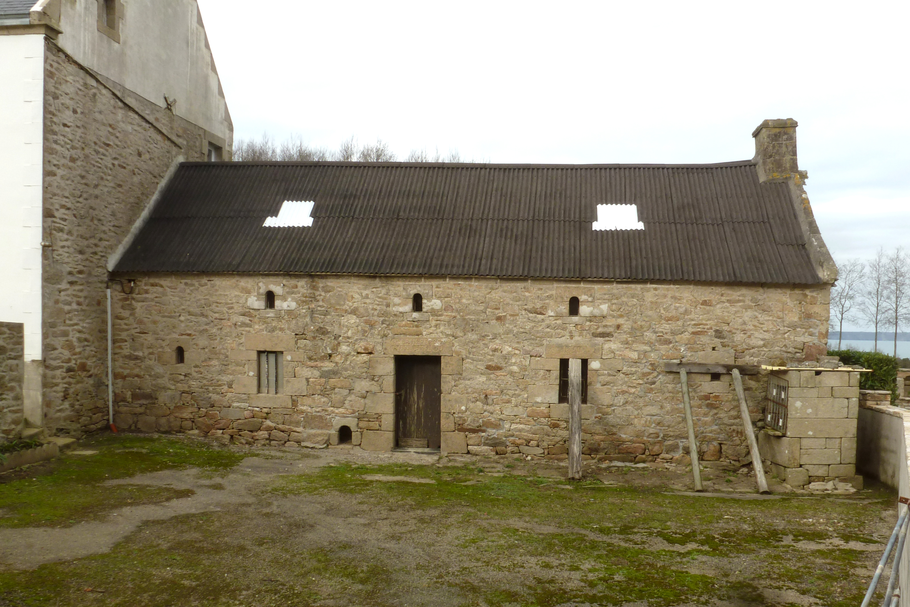 Kerguennec, ferme datée 1841. Elévation antérieure du logis et puits accolé à la façade. (2020)Immatriculation