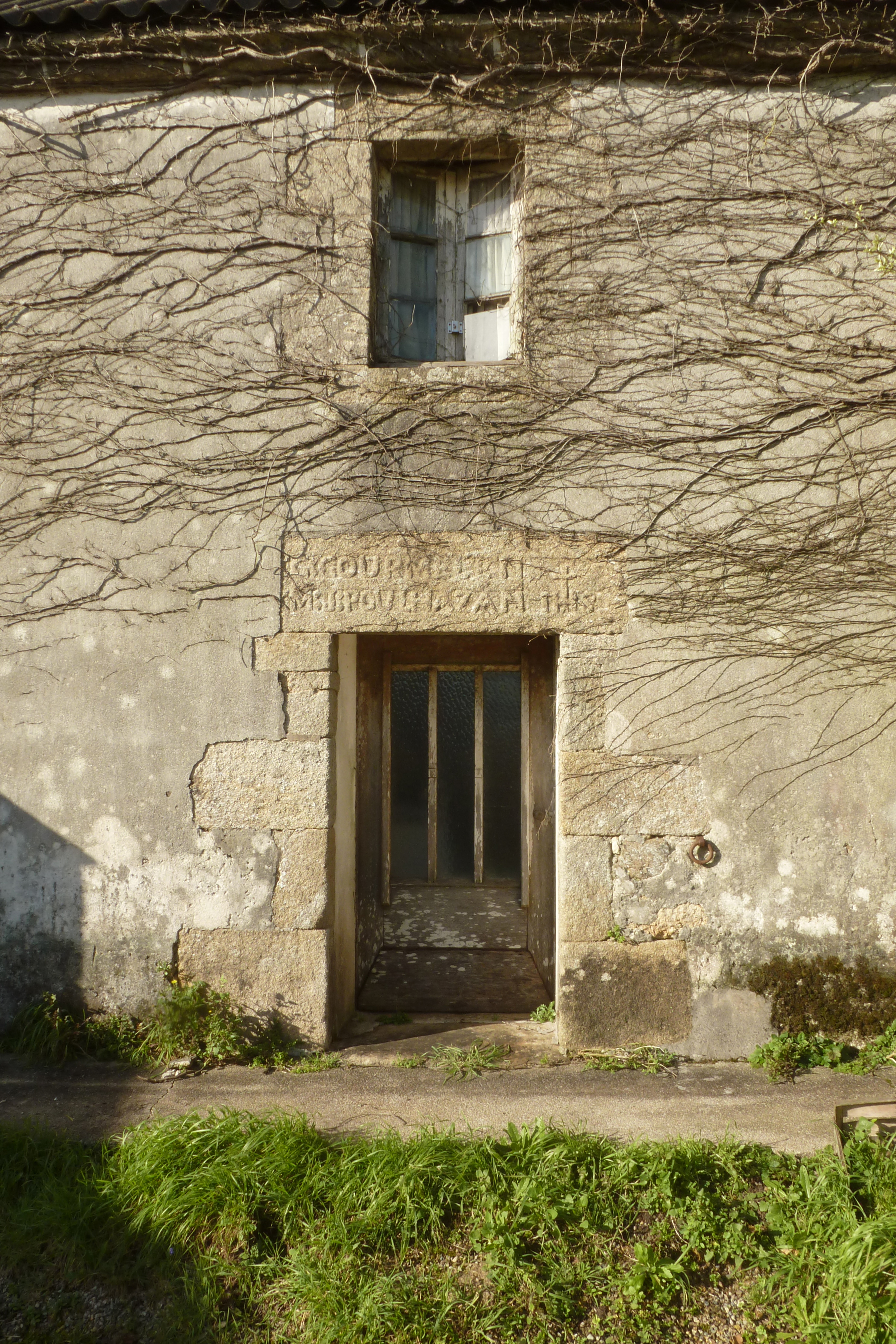 Kerennou, ferme 1 datée 1822. Détail de la porte d'entrée et inscription : " C : GOURMELIN / M : J : POULHAZAN / IHS". (2020)Immatriculation