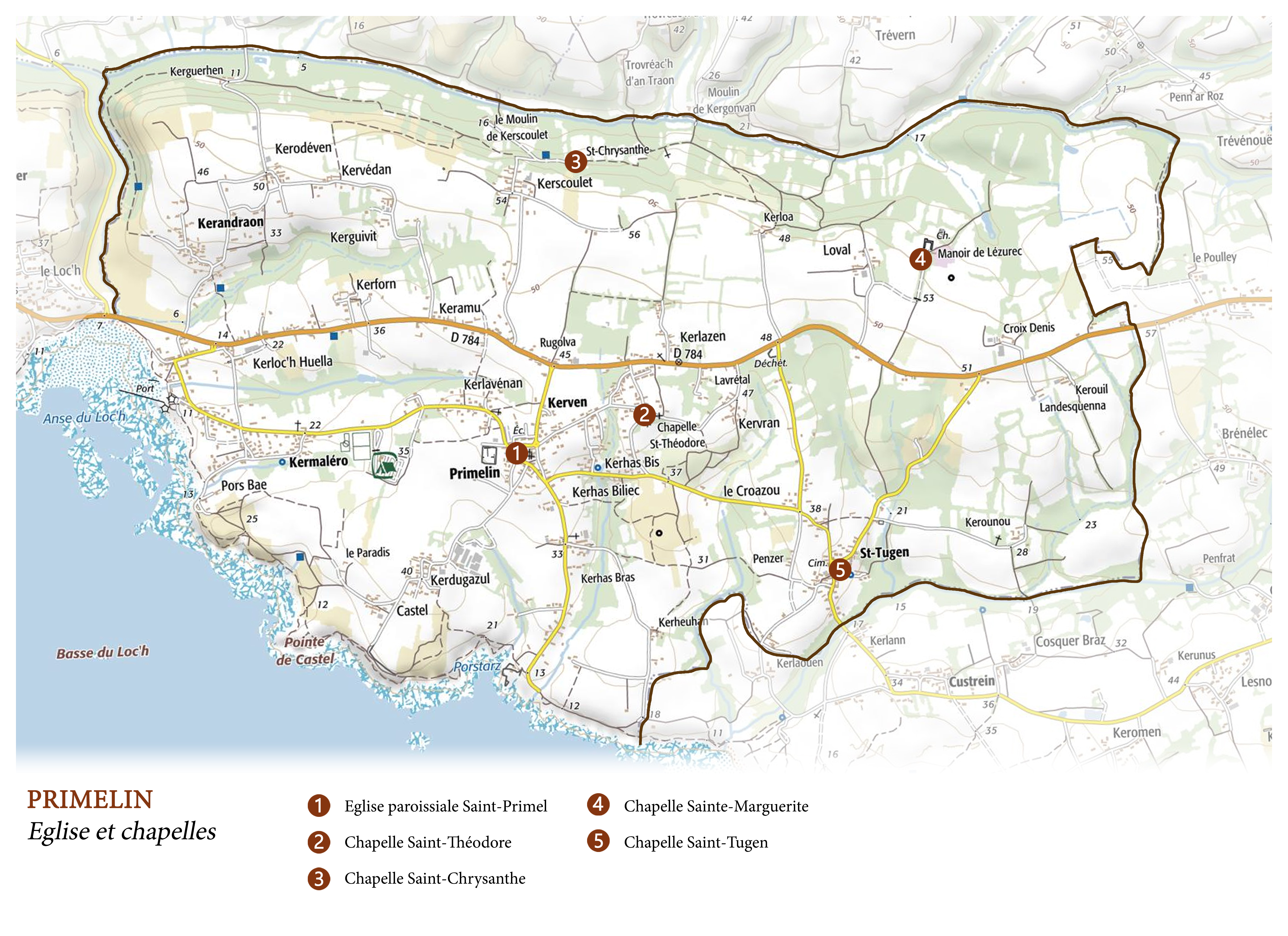 Les églises et chapelles de Primelin, carte de localisation.Immatriculation