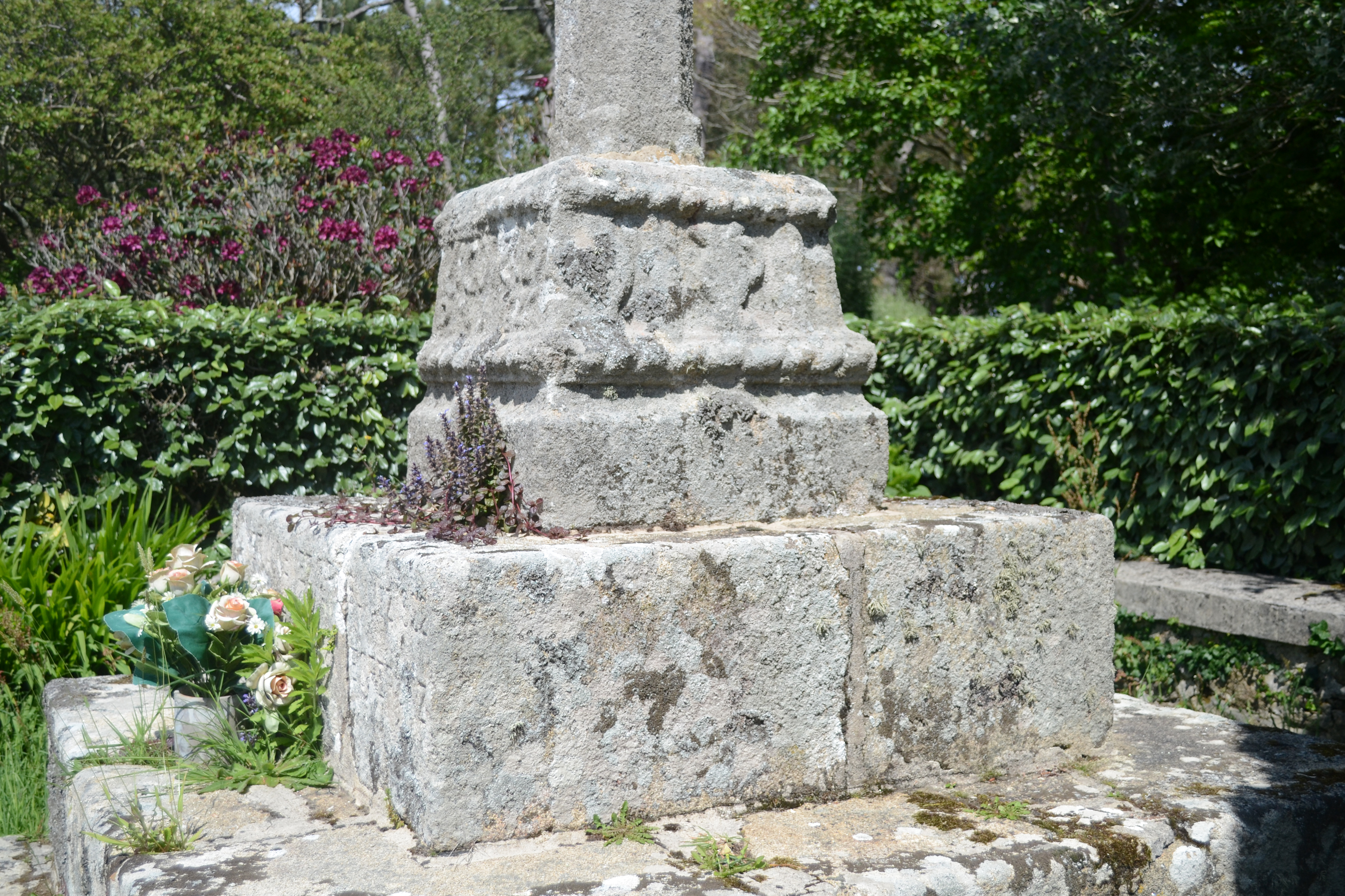 Détail du socle côté sud. Calice. (2020)Immatriculation