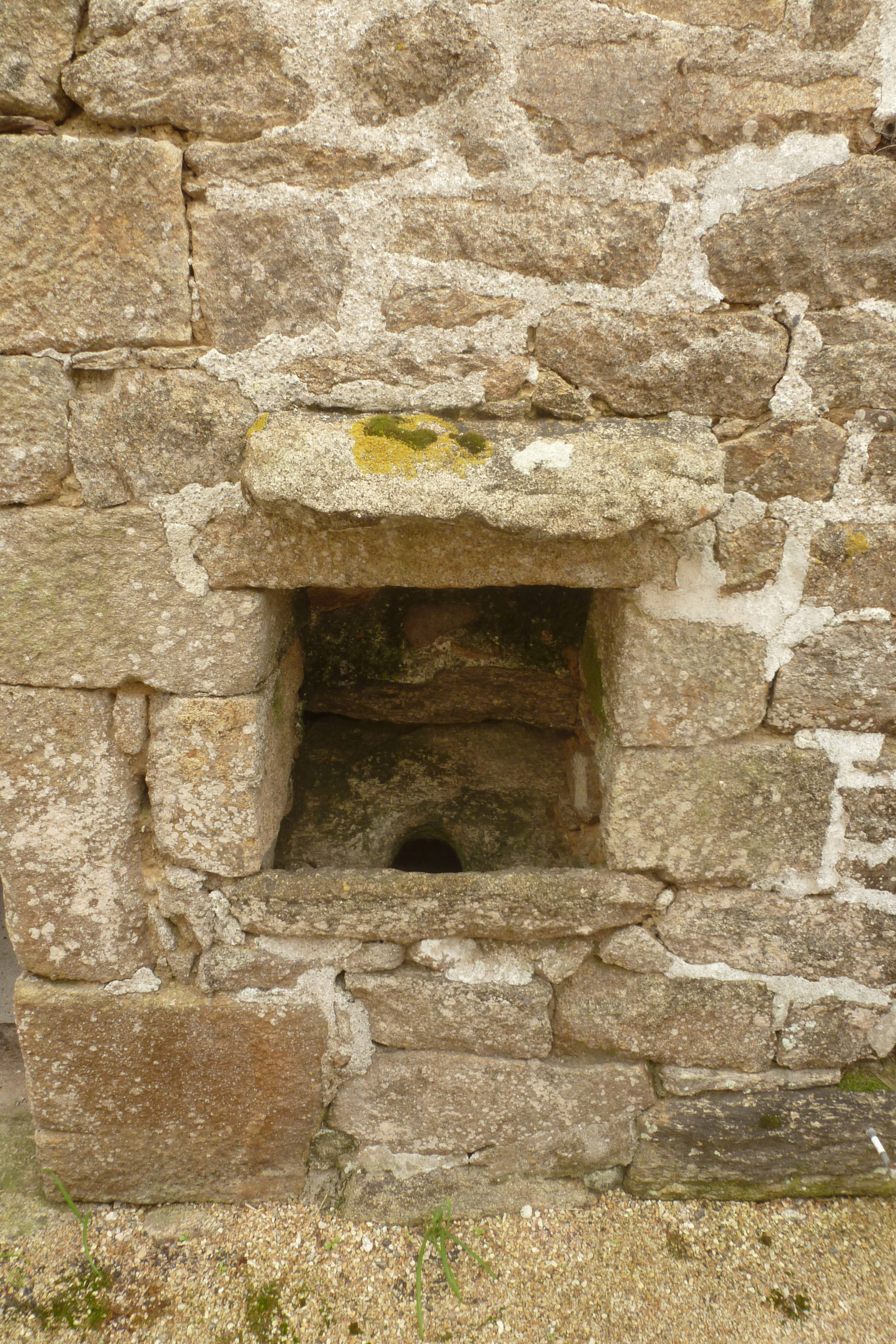 Crèches à cochons nord, détail d'une mangeoire, vue prise de l'extérieur.Immatriculation