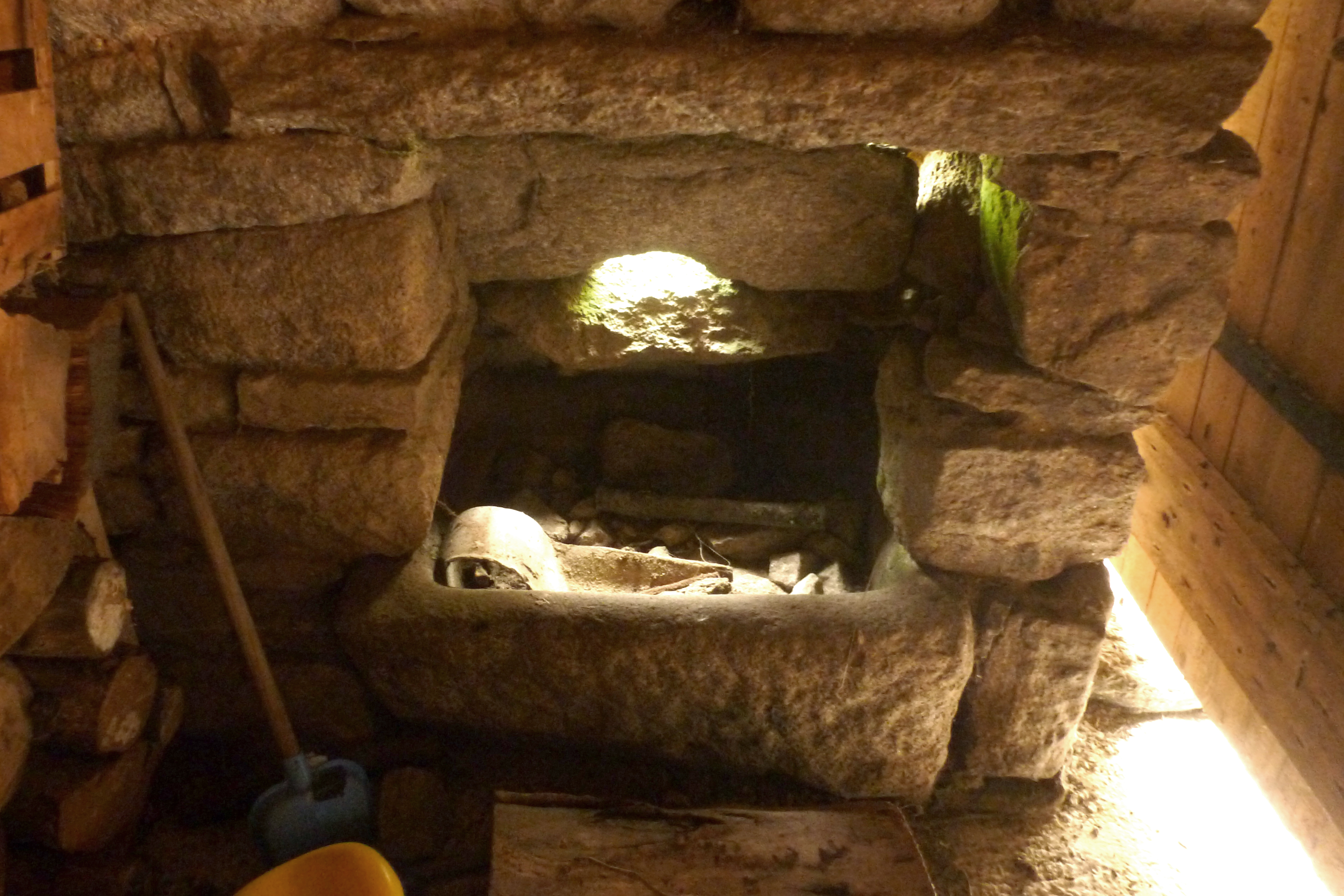 Crèches à cochons nord, détail d'une mangeoire, vue prise de l'intérieur.Immatriculation