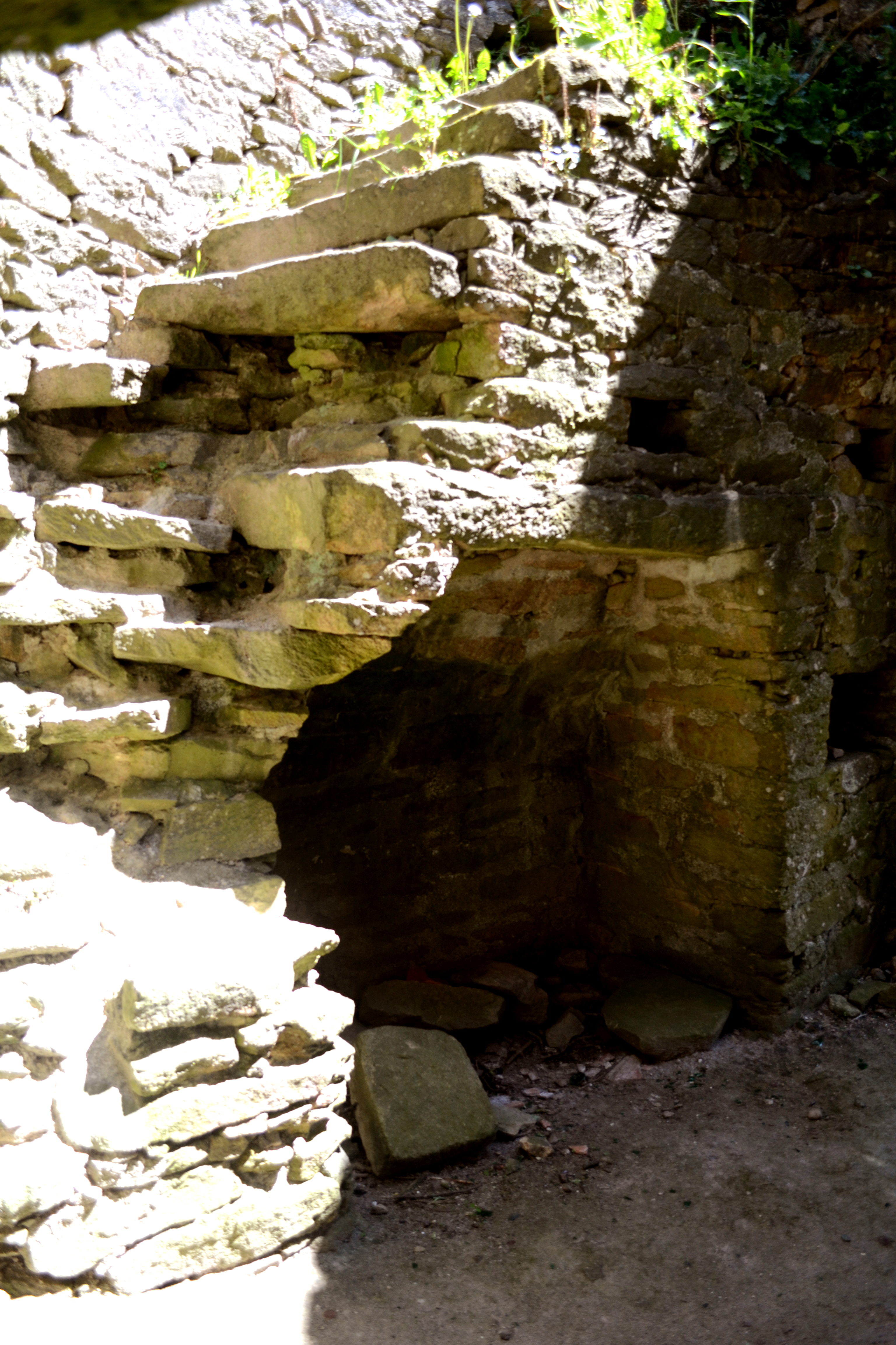 Intérieur, côté est, escalier et couche du meunier (vestiges).Immatriculation