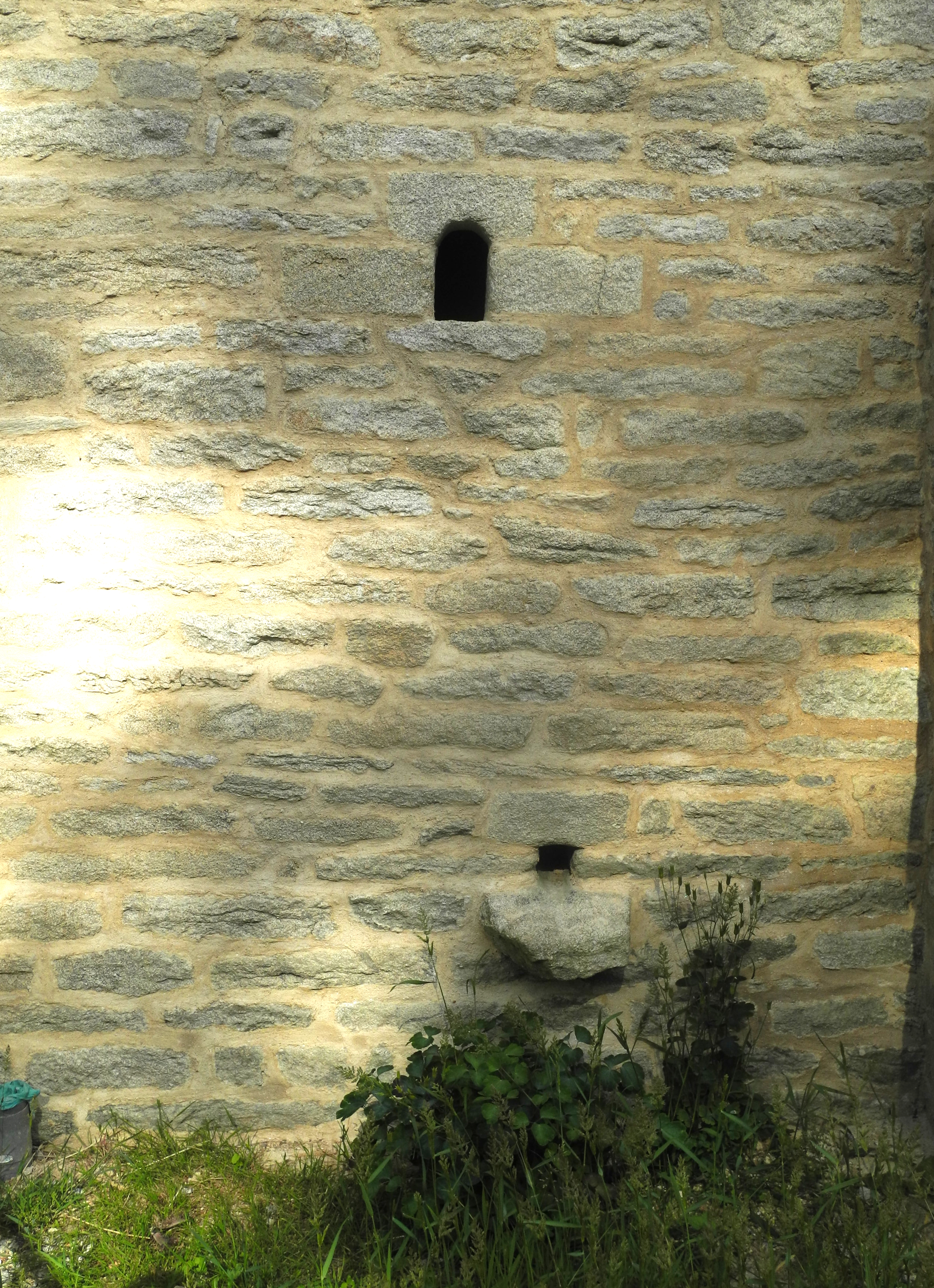 Logis, détail de l'élévation ouest : jour éclairant l'arrière cuisine et trou d'évacuation des eaux grises.Immatriculation