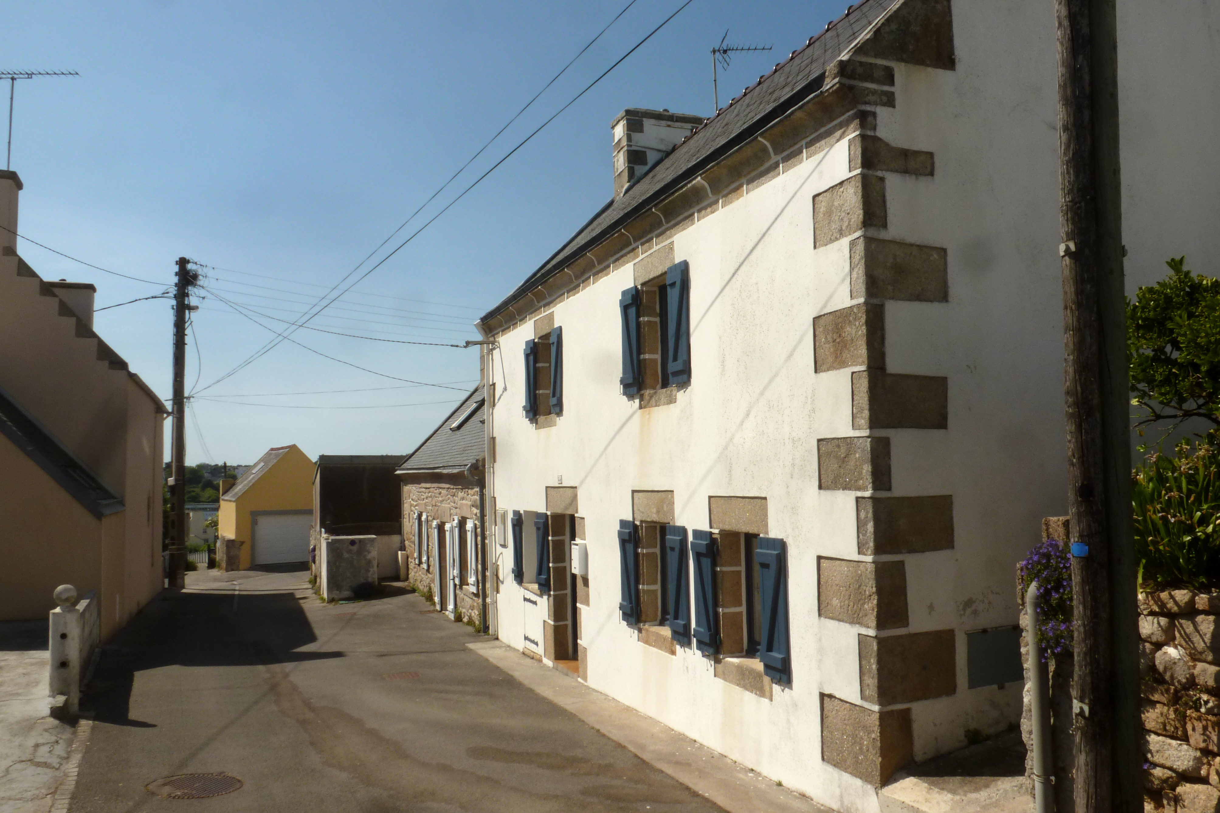 Partie sud du village, rue ar Veil, vue prise de l'est. (2020)Immatriculation