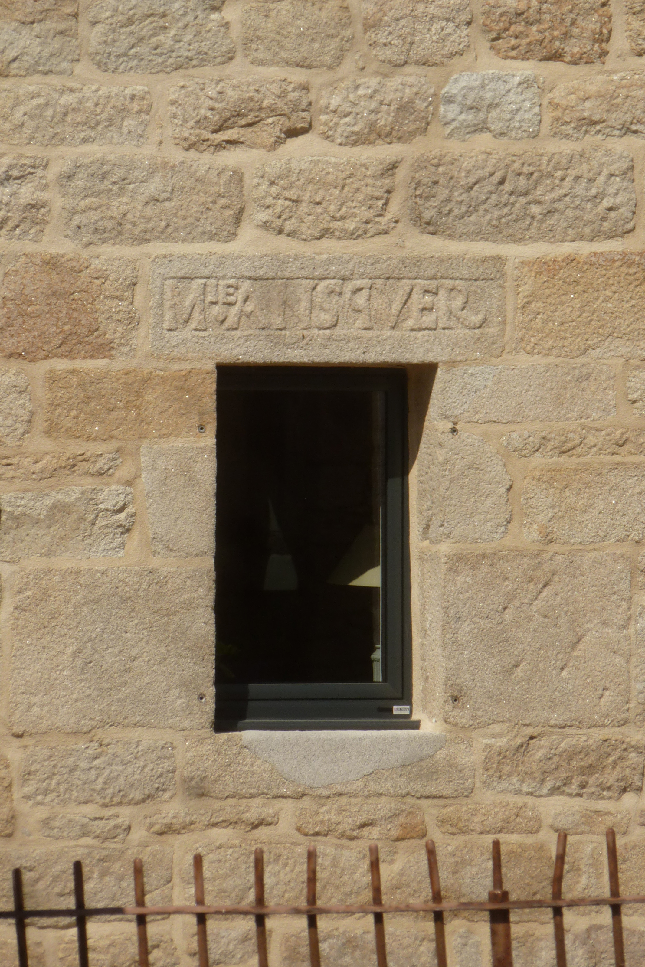Logis daté 1812, détail de la fenêtre sud et inscription : Mie . ANSQUER. (2020)Immatriculation