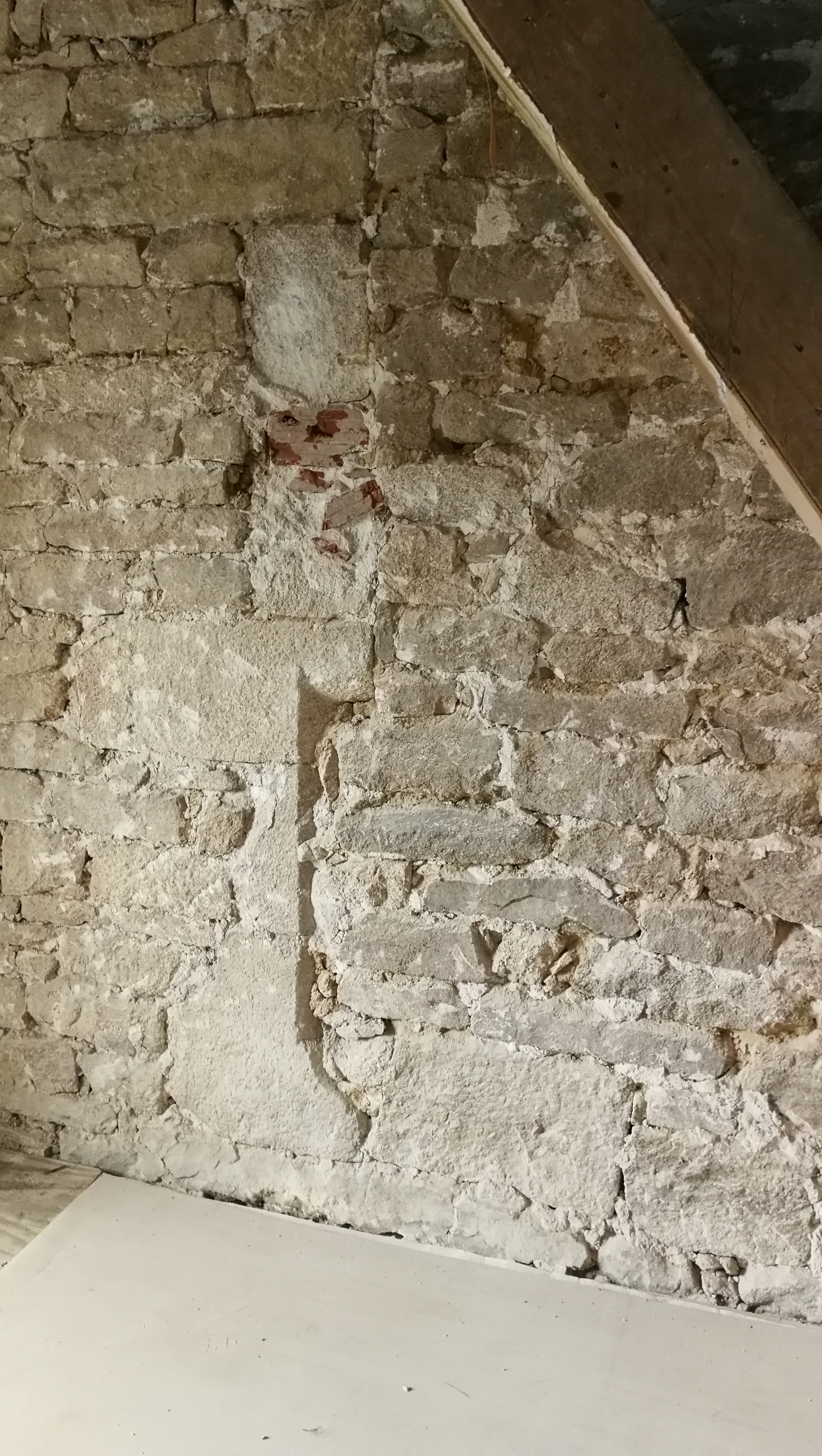 Etage, seconde pièce à feu à usage de chambre : vestiges d'une cheminée datable de la première moitié du 15e siècle (corbelets et piédroits à chanfrein), état en 2020 après piquage des mursImmatriculation