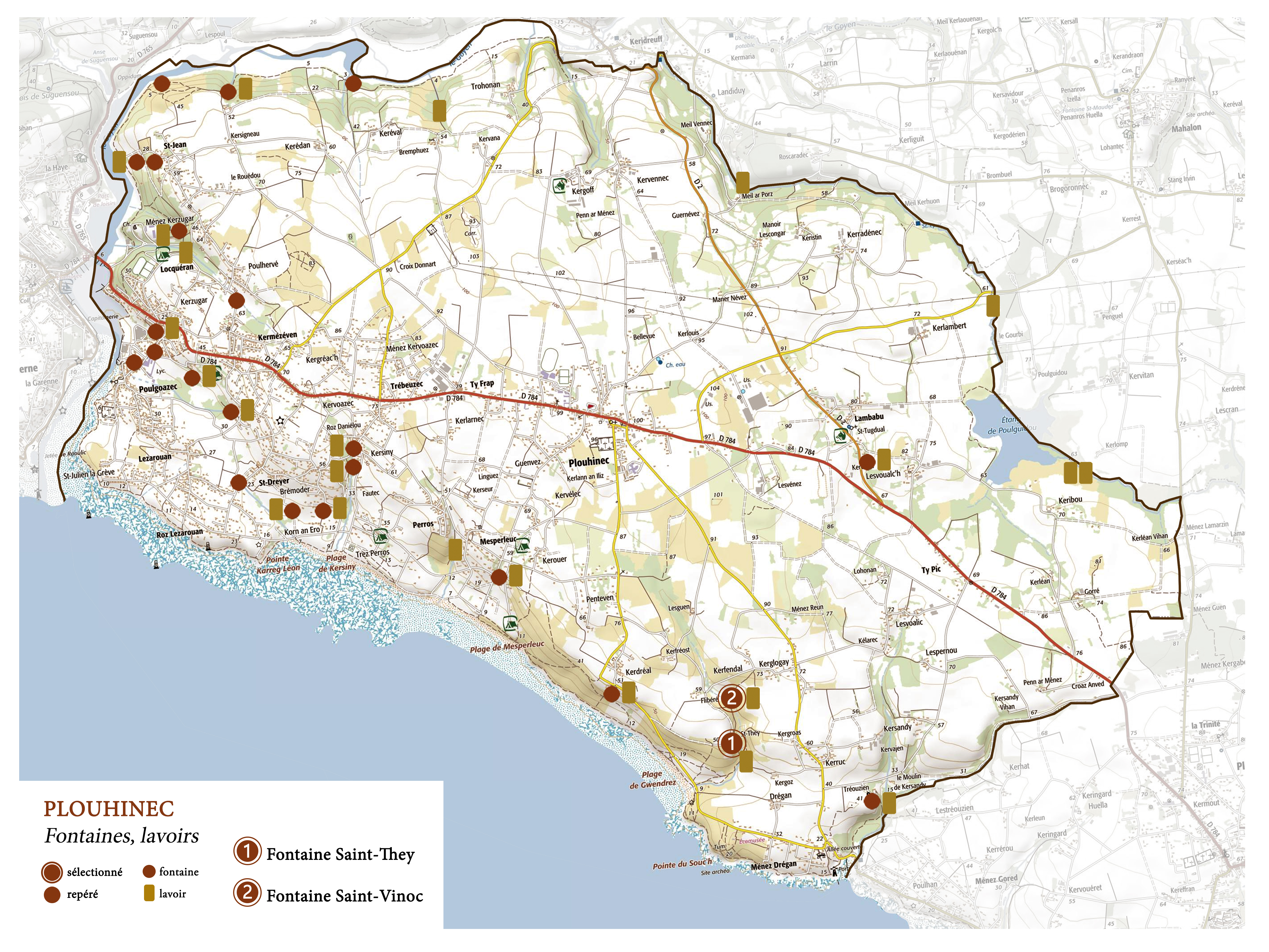 Les lavoirs et fontaines de Plouhinec, carte de localisation.Immatriculation