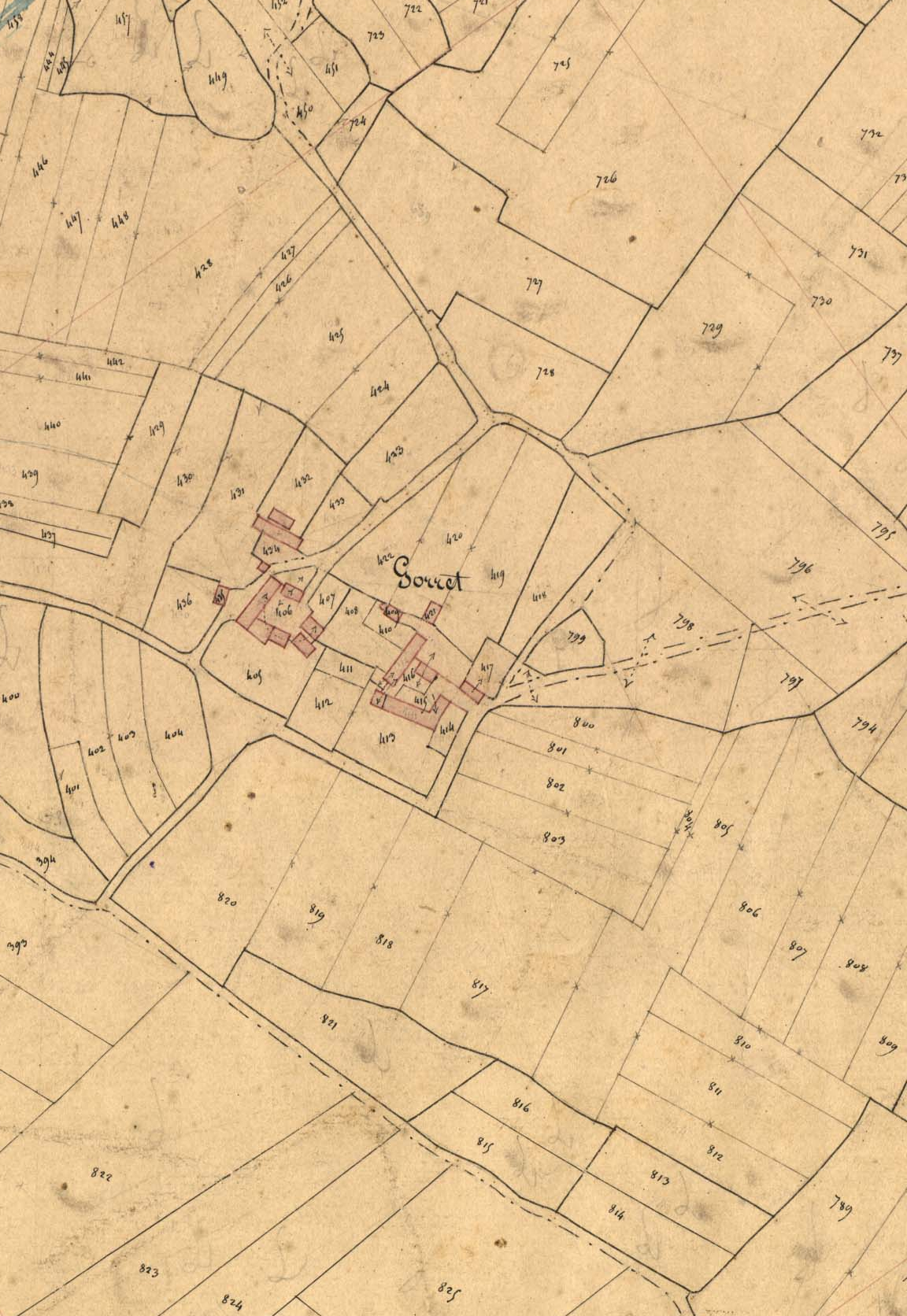 Village de Gorré, Section D 1 de Lesvoalic du cadastre de la commune de Plouhinec, 1836.Immatriculation