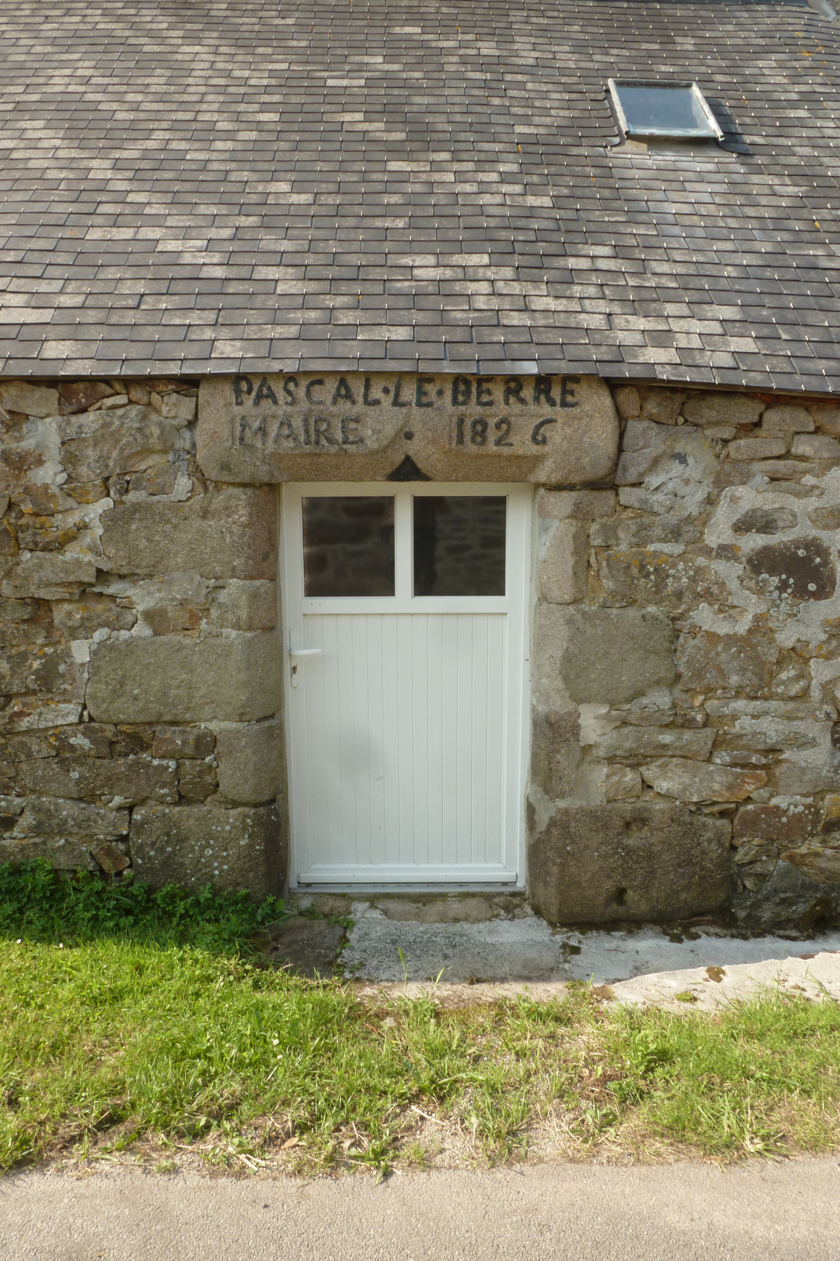 Kergoz, ferme. Linteau sculpté.Immatriculation