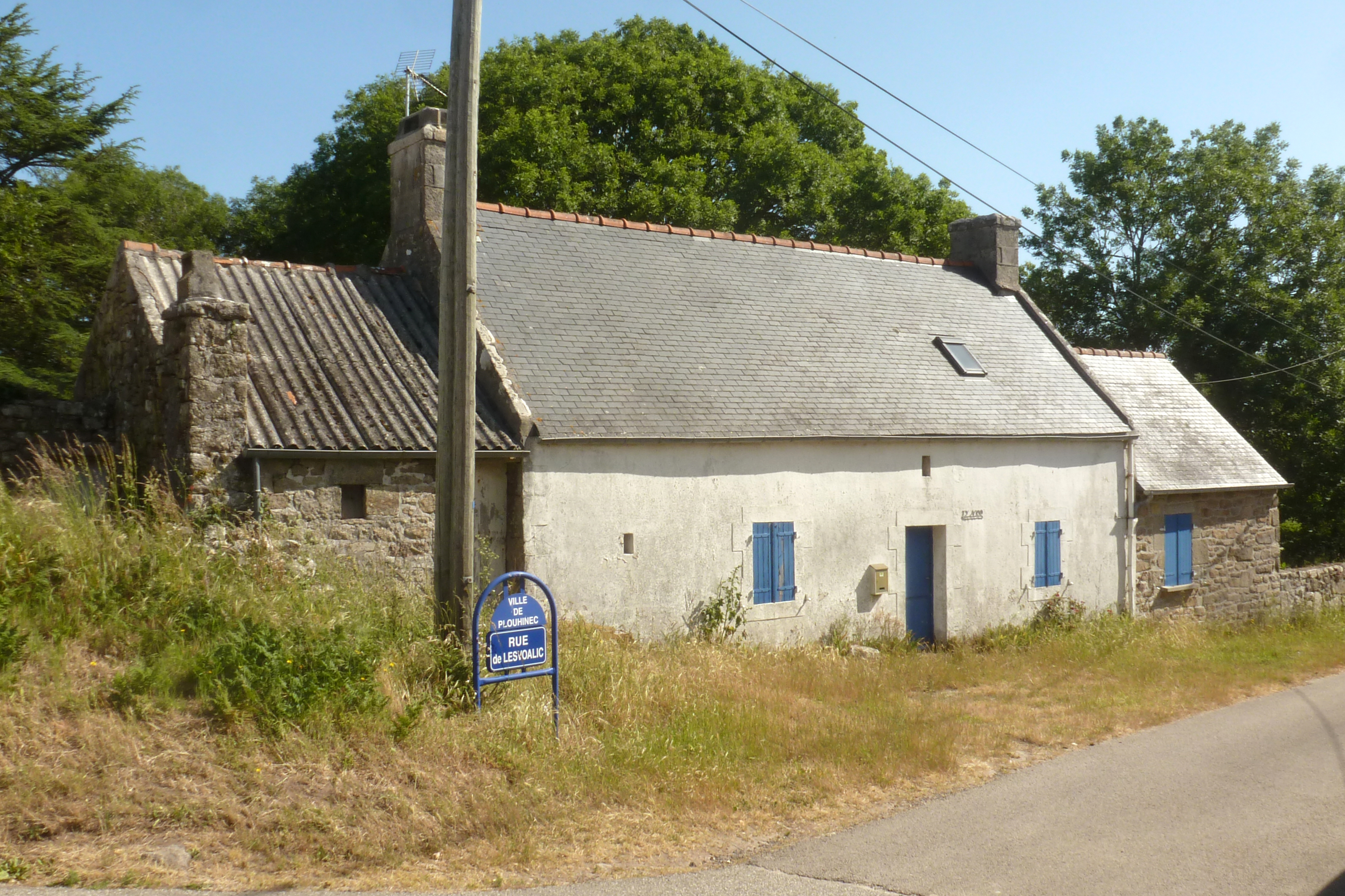 Lesvoalic, maison à deux pièces en rez-de-chaussée et dépendances accolées des deux côtés. Façade totalement peinte en blanc.Immatriculation